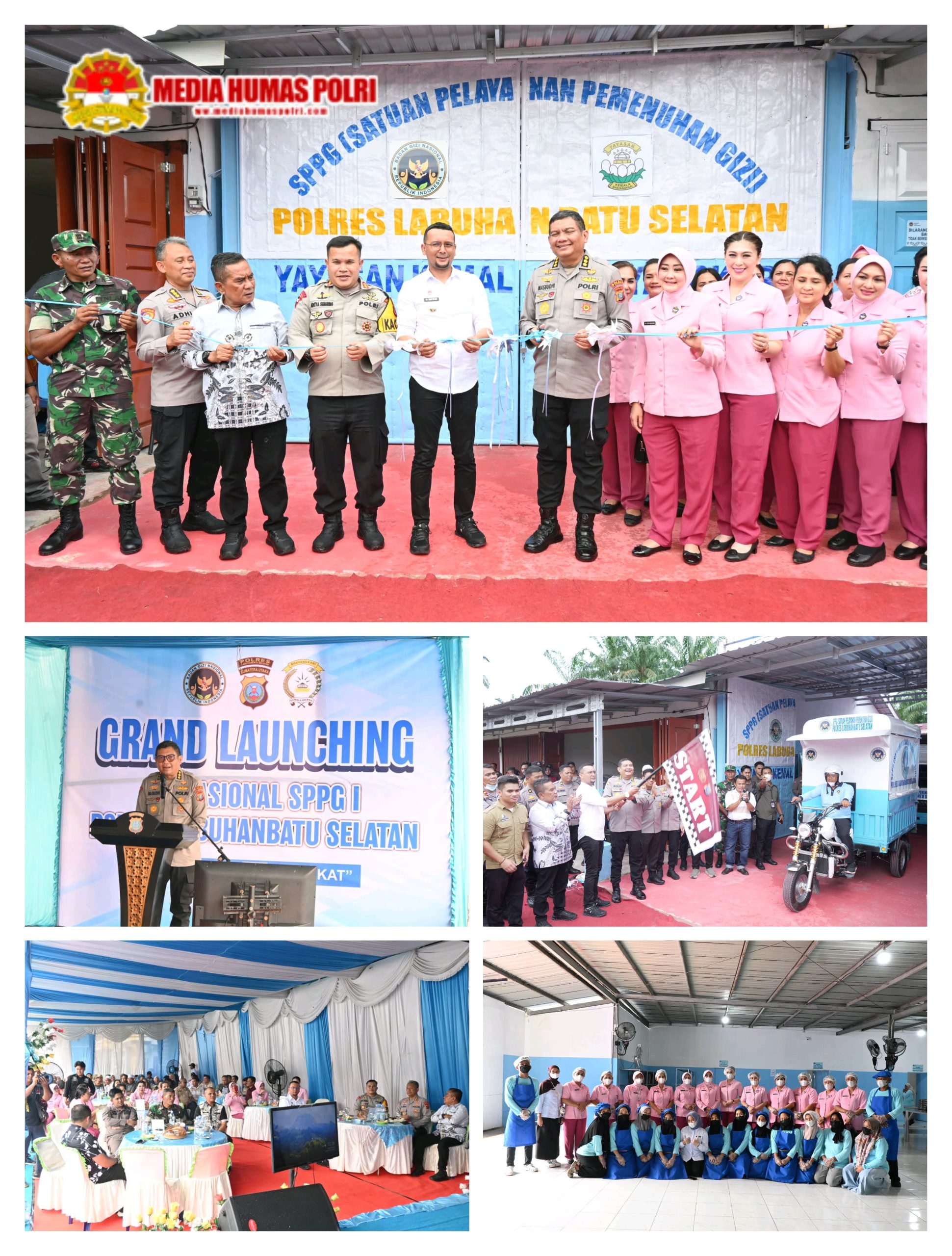 Tim dari Polda Sumatera Utara yang dipimpin Irwasda Poldasu, Kombes Pol Nanang Masbudhi, S.I.K., M.S.I., C.F.R.A., meresmikan grand launching operasional Satuan Pelayanan Pemenuhan Gizi (SPPG) I Polres Labuhanbatu Selatan, Kamis (20/11/2025). Program ini berlokasi di Dusun Aek Gapuk, Desa Tanjung Medan, Kecamatan Kampung Rakyat, Kabupaten Labuhanbatu Selatan dan menjadi langkah konkret Polri dalam mendukung upaya pencegahan stunting dan peningkatan kualitas kesehatan masyarakat.