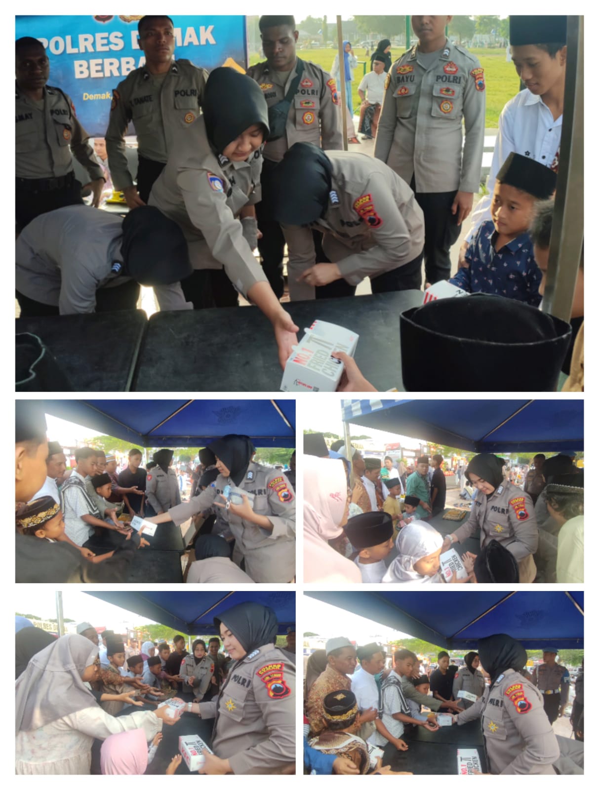 Kegiatan “Polres Demak Berbagi” merupakan agenda rutin yang dilaksanakan tidak hanya waktu salat Ied saja, program ini juga dilaksanakan pada saat salat Jum’at di berbagai masjid setiap minggunya.