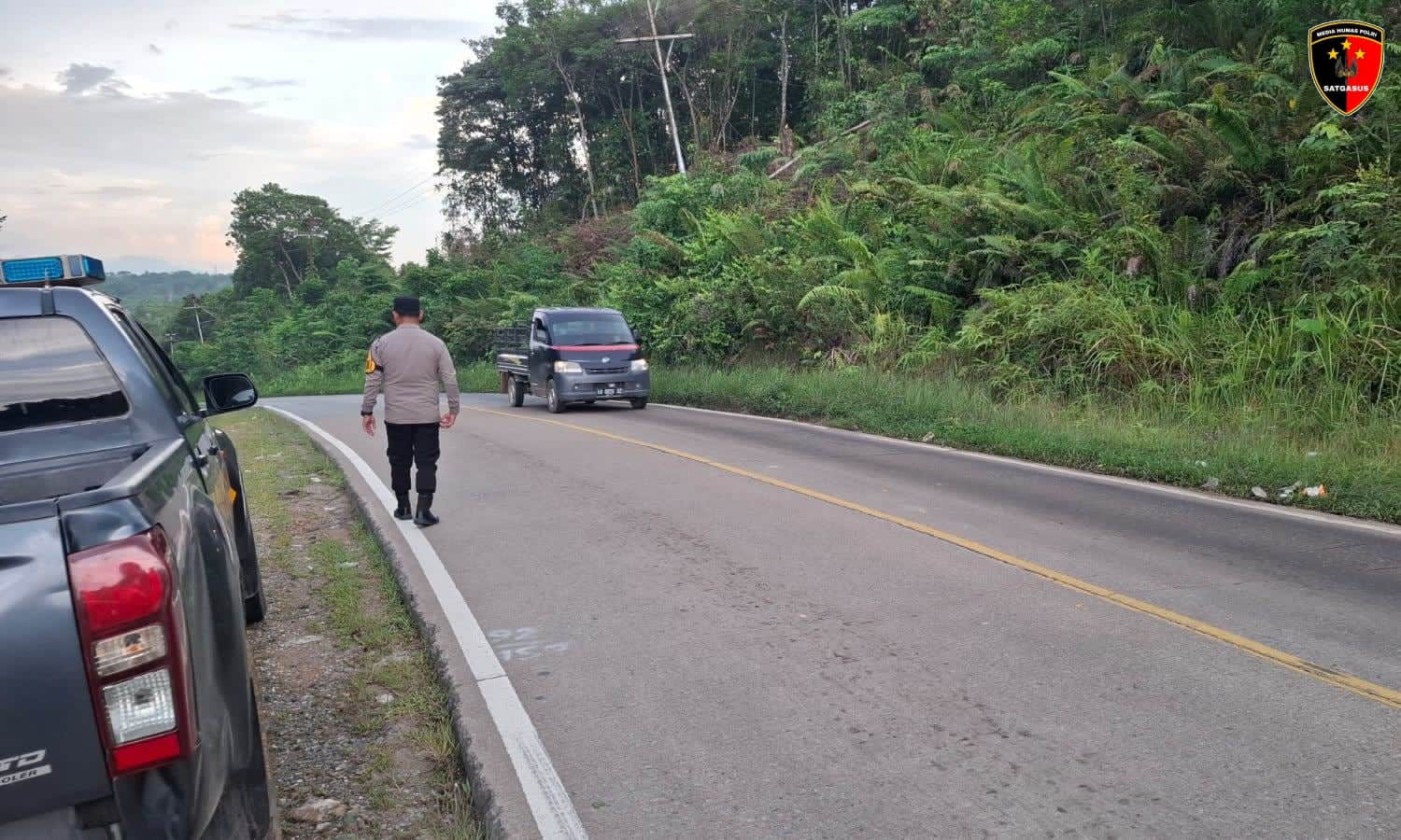 Selain melakukan pemeriksaan kondisi jalan, personel juga melaksanakan pengaturan arus lalu lintas guna memastikan situasi tetap kondusif. Berdasarkan pantauan petugas, arus kendaraan di jalur tersebut berjalan lancar tanpa hambatan berarti.