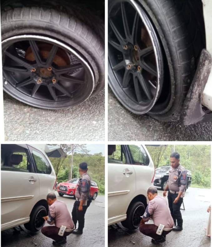 Kedua anggota tersebut adalah Aiptu Sutrisno dan Aiptu Feibel Sihaloho yang dikenal aktif dan berdedikasi dalam menjalankan tugas di jajaran Satlantas. Tanpa ragu, mereka langsung membantu proses penggantian ban di lokasi yang cukup rawan karena berada di posisi tanjakan.