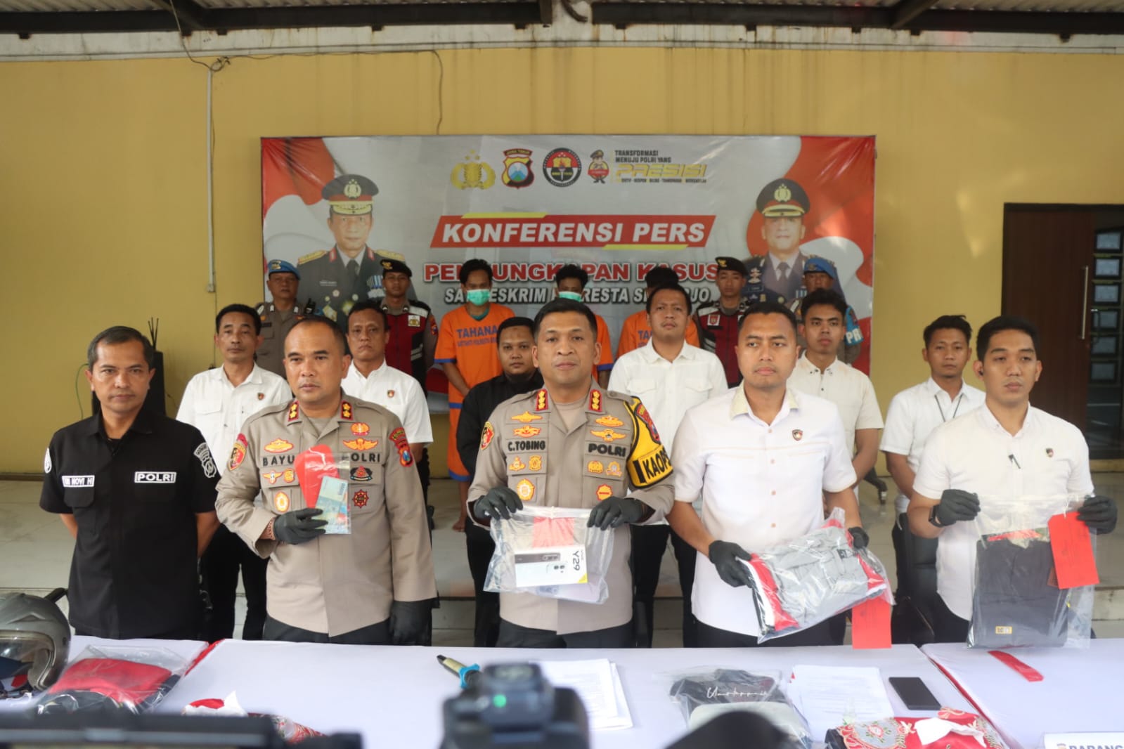 Satreskrim Polresta Sidoarjo berhasil meringkus para pelaku penjambretan seorang wanita, S.W., 46 tahun, di depan Halte Bus Pondok Mutiara yang terjadi pada 7 Mei 2025 pukul 11 malam.