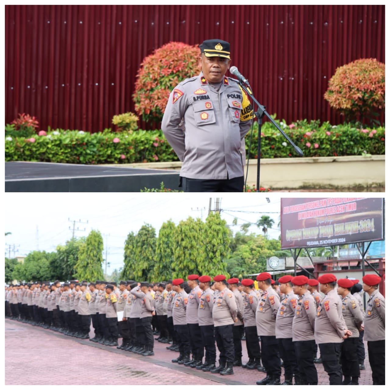 Polres Aceh Timur, Polda Aceh menggelar apel siaga tahap masa tenang dan menjelang pemungutan suara Pilkada 2024.