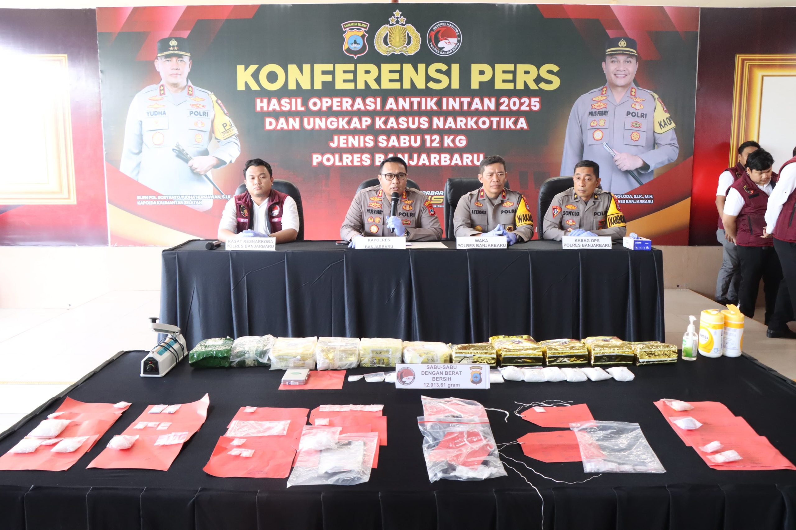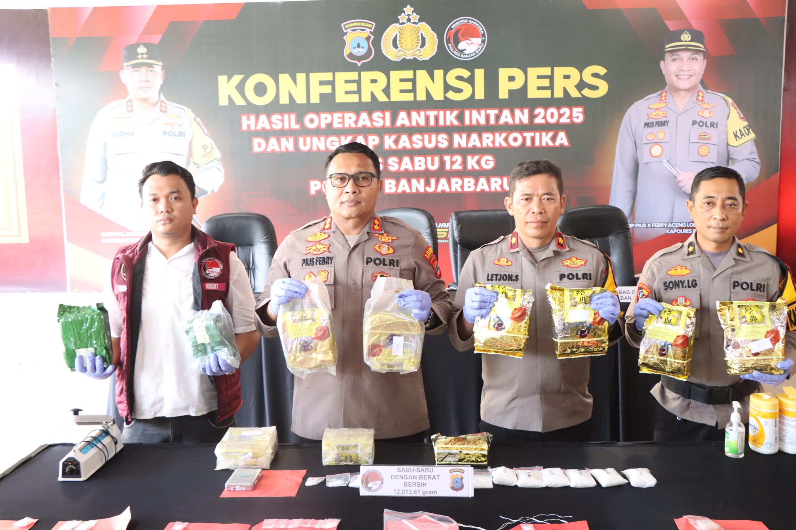 Kepolisian Resor Banjarbaru melalui Satresnarkoba berhasil membongkar peredaran narkotika dalam jumlah besar yang diduga terkait jaringan Fredy Pratama. Tiga pelaku ditangkap dan lebih dari 12 kilogram sabu berhasil diamankan dalam rangkaian Operasi Antik Intan 2025.