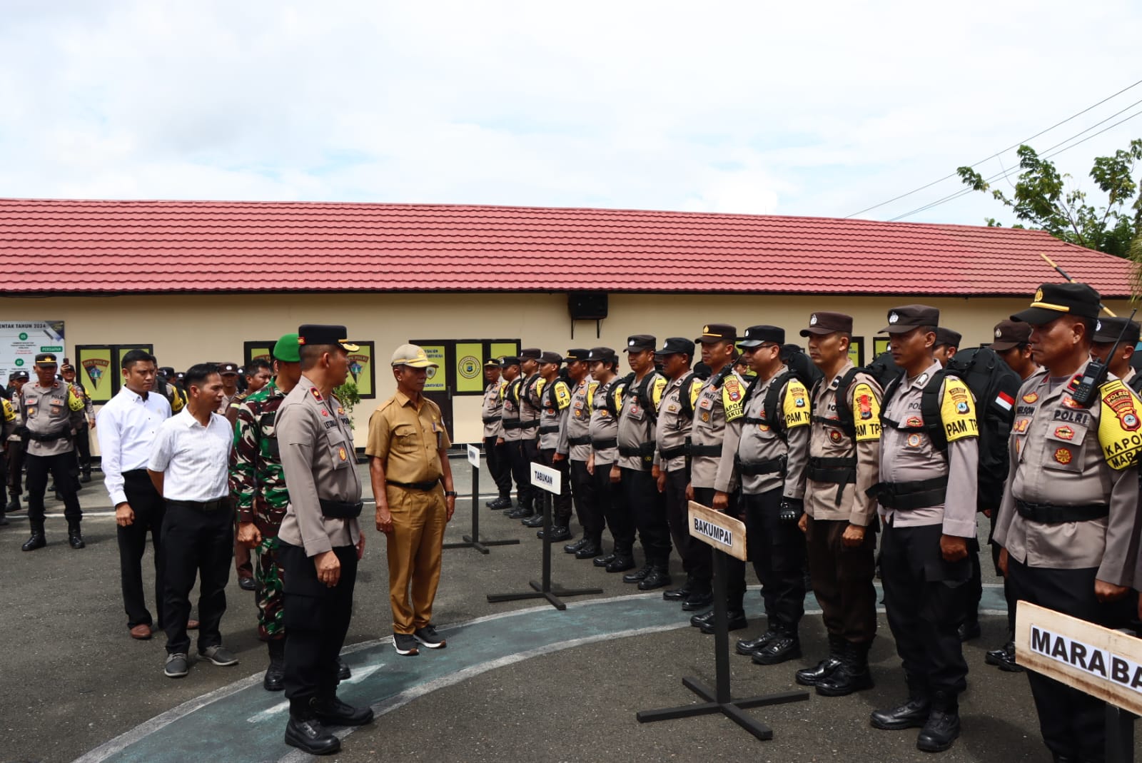 Rangkaian kegiatan meliputi pemeriksaan kesiapan pasukan, pemasangan ban lengan tanda pengamanan TPS, dan pengecekan peralatan operasional.