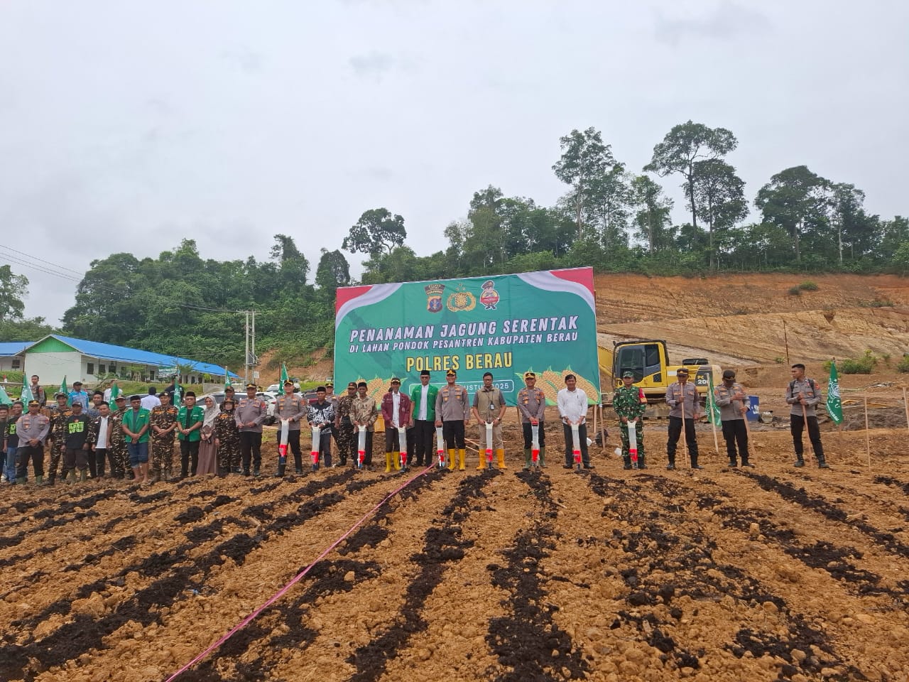 Dalam rangka mendukung program ketahanan pangan nasional, Polres Berau menggelar kegiatan penanaman jagung serentak di lahan Pondok Pesantren (Ponpes) Annahdiyyah, Jalan Kalimarau, Gang Family, RT 014, Kelurahan Rinding, Kecamatan Teluk Bayur, Kabupaten Berau, Rabu (6/8/2025).
