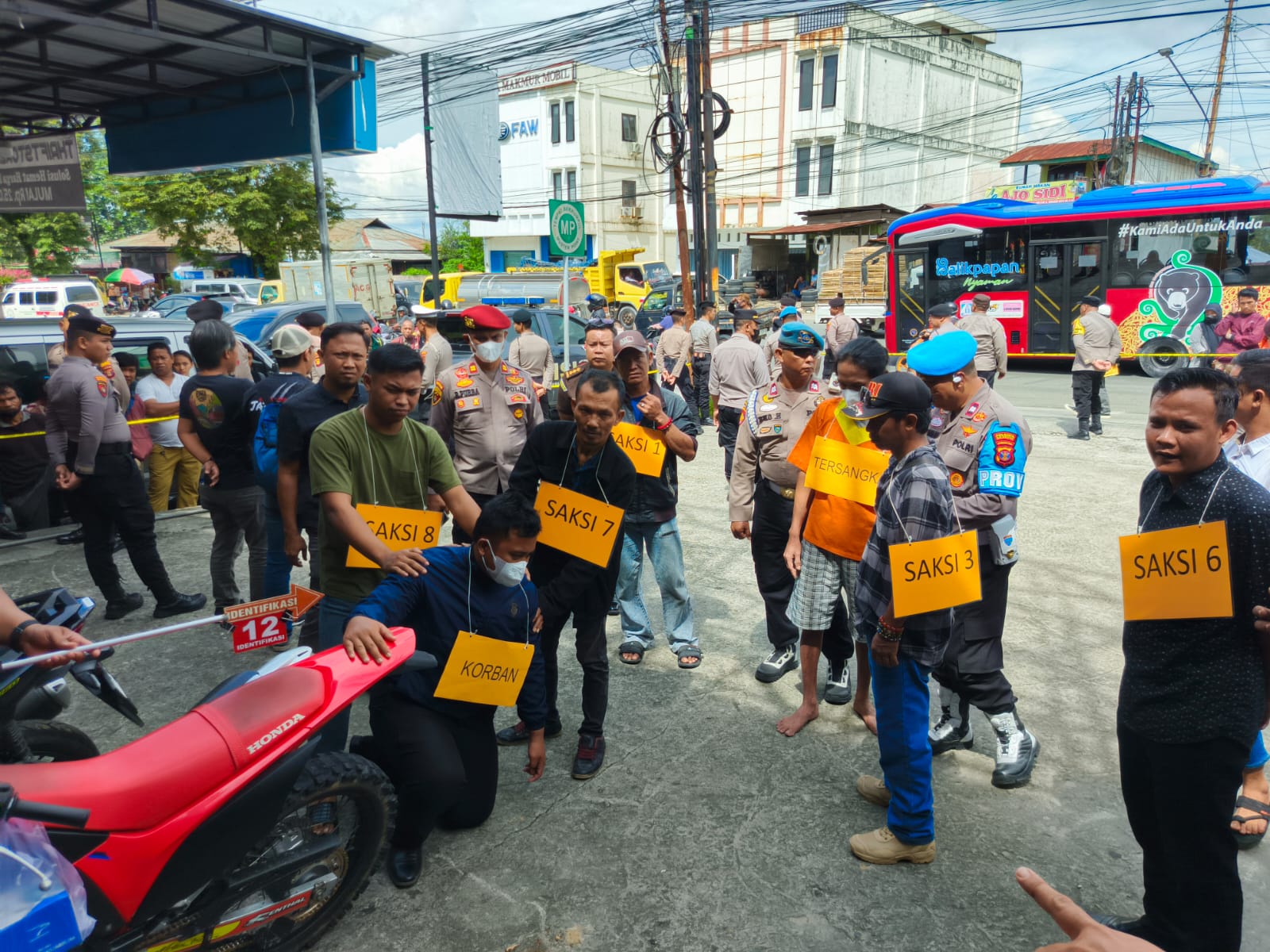 Polsek Balikpapan Utara bersama Polresta Balikpapan menggelar rekonstruksi kasus penganiayaan yang menyebabkan korban meninggal dunia di lokasi Karaoke Suka-suka, Balikpapan Utara, Kamis (10/4/2025).