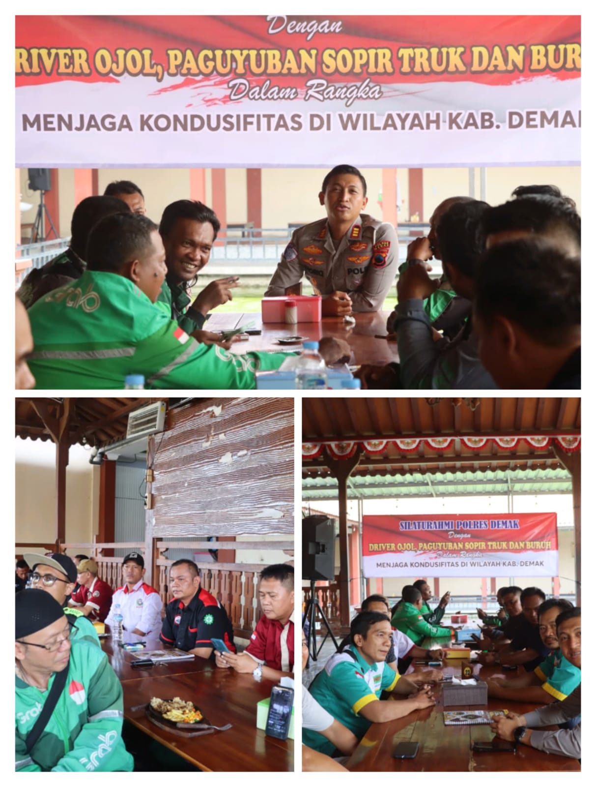 Dalam upaya mempererat hubungan kemitraan antara Kepolisian dan masyarakat, Kepolisian Resor (Polres) Demak, Jawa Tengah, menggelar kegiatan silaturahmi bersama paguyuban driver ojek online (Ojol), sopir truk, dan komunitas buruh di RJ Resto, Dukuh Blambangan, Desa Kendaldoyong, Kecamatan Wonosalam, Demak, Kamis (16/10/2025).