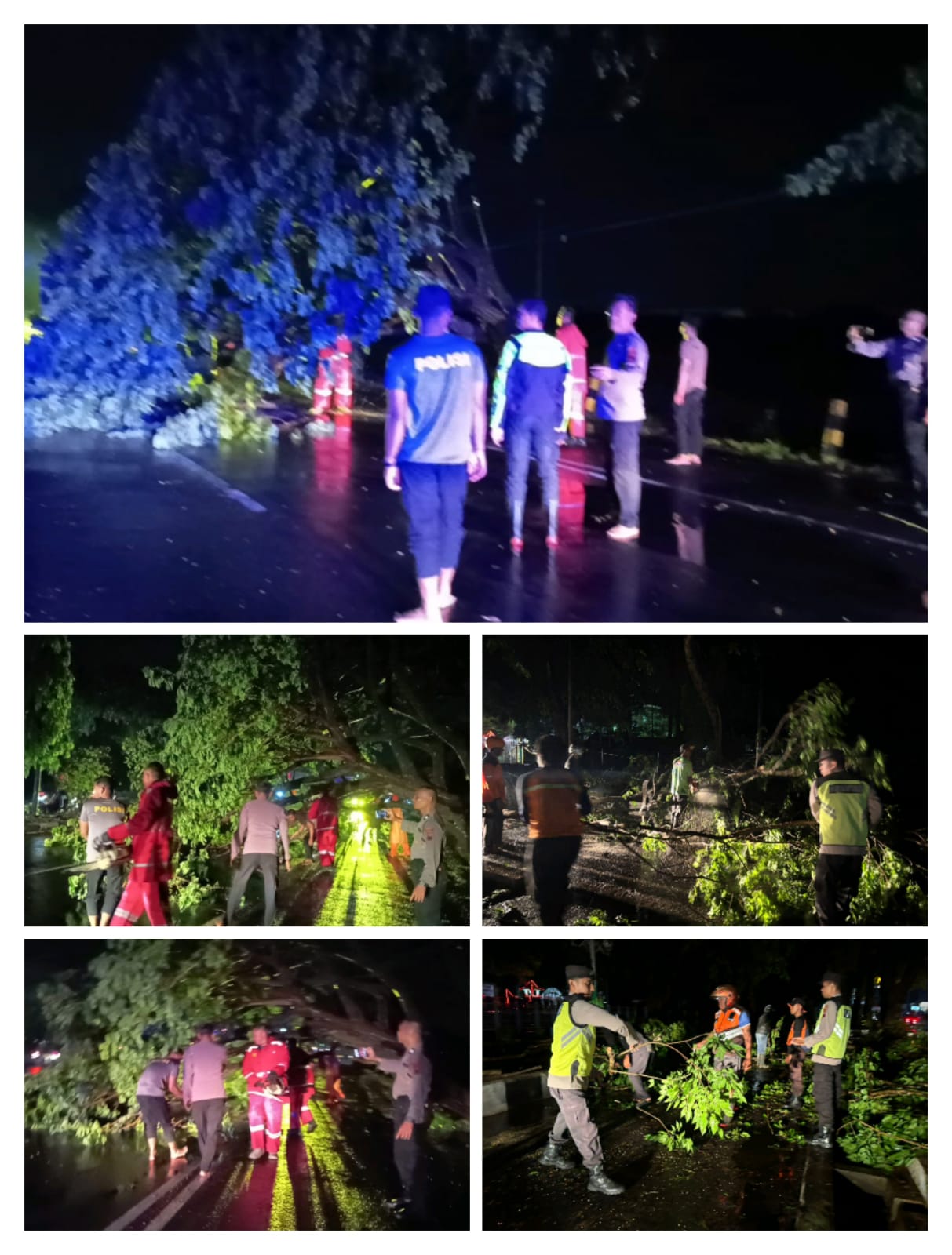 Kepolisian Resor (Polres) Demak, Jawa Tengah, bersama instansi terkait bergerak cepat menanggapi musibah pohon tumbang yang terjadi di beberapa titik usai wilayah Demak diterjang hujan deras disertai angin kencang pada Senin (29/9) sore.