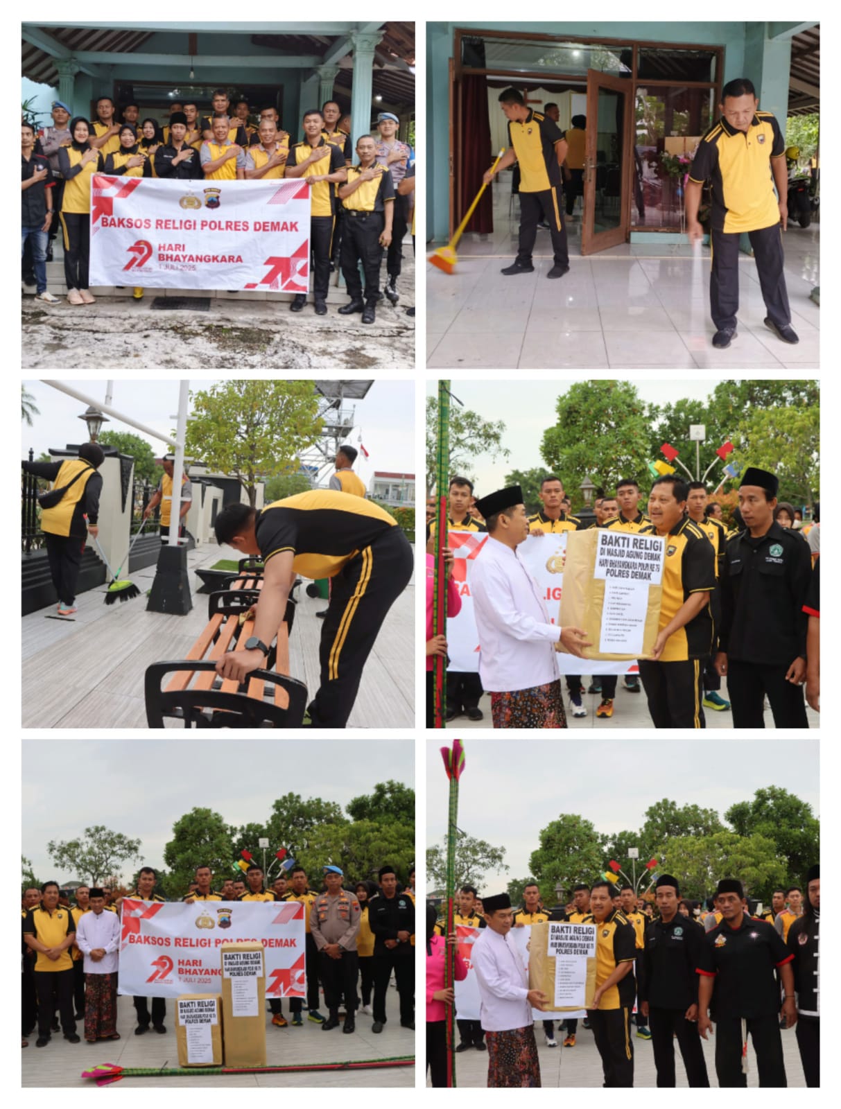 Dalam rangka menyambut Hari Bhayangkara ke-79, Kepolisian Resor (Polres) Demak, Jawa Tengah menggelar kegiatan bakti religi serentak dengan membersihkan berbagai tempat ibadah pada, Rabu (18/6). Kegiatan bakti religi serentak ini dipimpin langsung oleh Kapolres Demak AKBP Ari Cahya Nugraha.