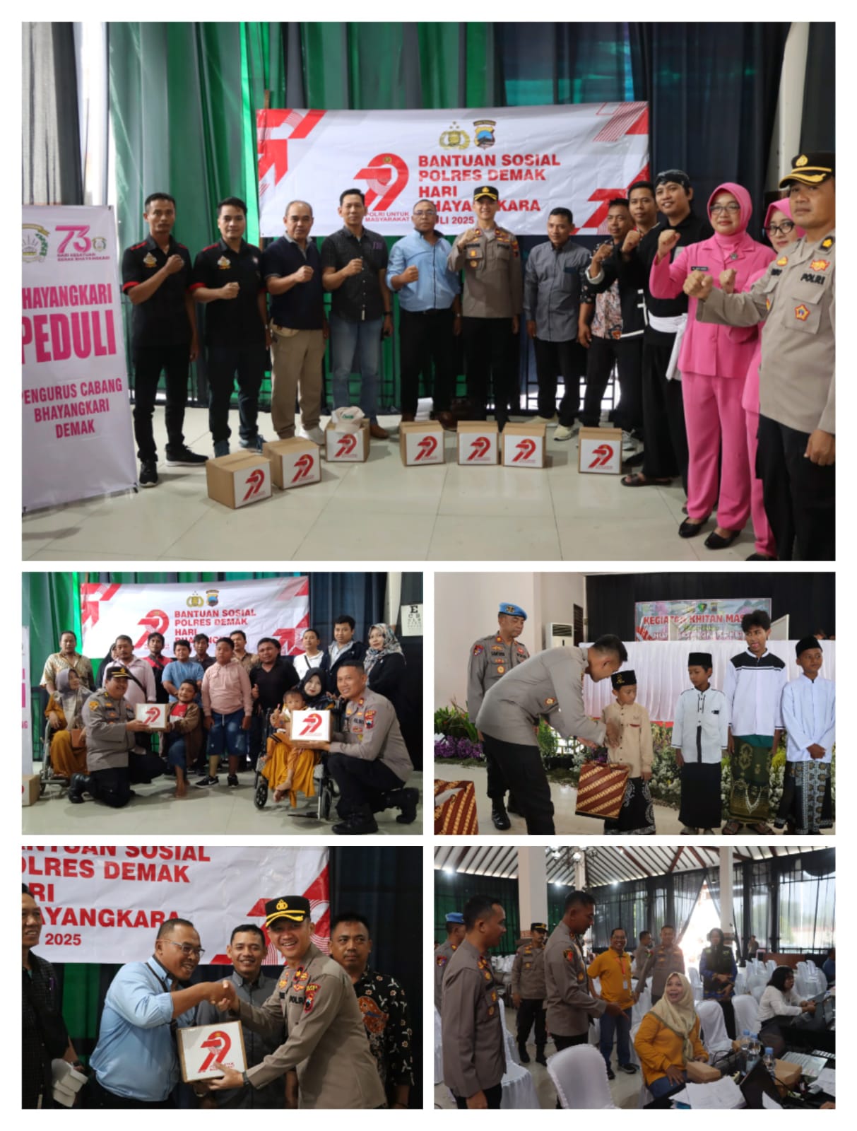 Kepolisian Resor Demak, Jawa Tengah menggelar bakti kesehatan dan penyaluran bantuan sosial dalam menyambut Hari Bhayangkara ke-79, di Pendopo Parama Satwika, Selasa (17/6/2025). Acara ini menjadi wujud nyata komitmen Polri dalam melayani dan mengayomi masyarakat.