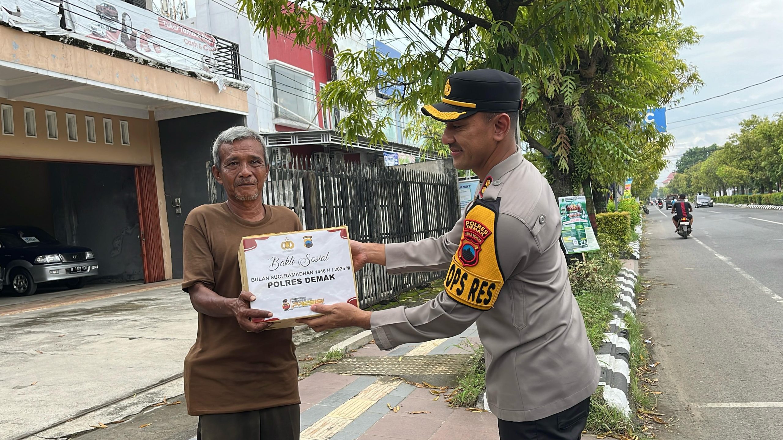 Polres Demak menggelar bakti sosial dalam rangka bulan suci Ramadhan 1446 H/2025 di Jalan Pemuda Demak, Minggu (9/3/2025).