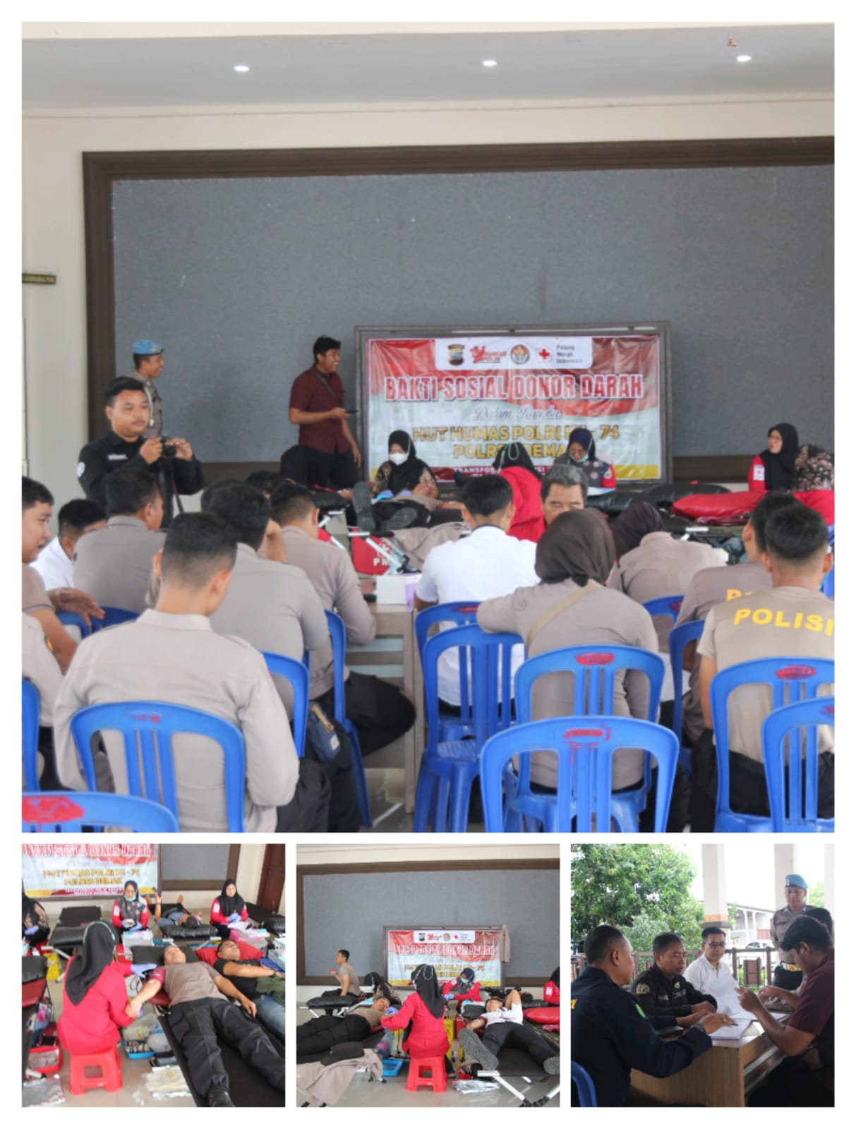 Dalam rangka memperingati Hari Ulang Tahun (HUT) Humas Polri ke-74, Kepolisian Resor (Polres) Demak, Jawa Tengah, menggelar aksi kemanusiaan berupa donor darah di Pendopo Parama Satwika, Mapolres Demak, Rabu (22/10/2025).