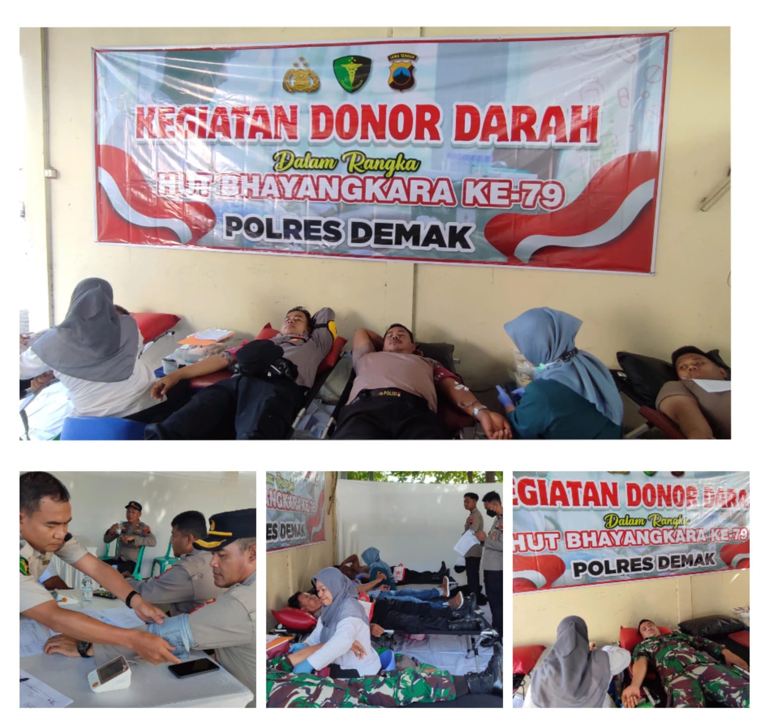 Dalam rangka menyambut Hari Bhayangkara ke-79, Polres Demak menggelar serangkaian kegiatan sosial. Diantaranya adalah bakti kesehatan donor darah yang digelar di halaman Mapolres setempat, Senin (16/6/2025) pagi.