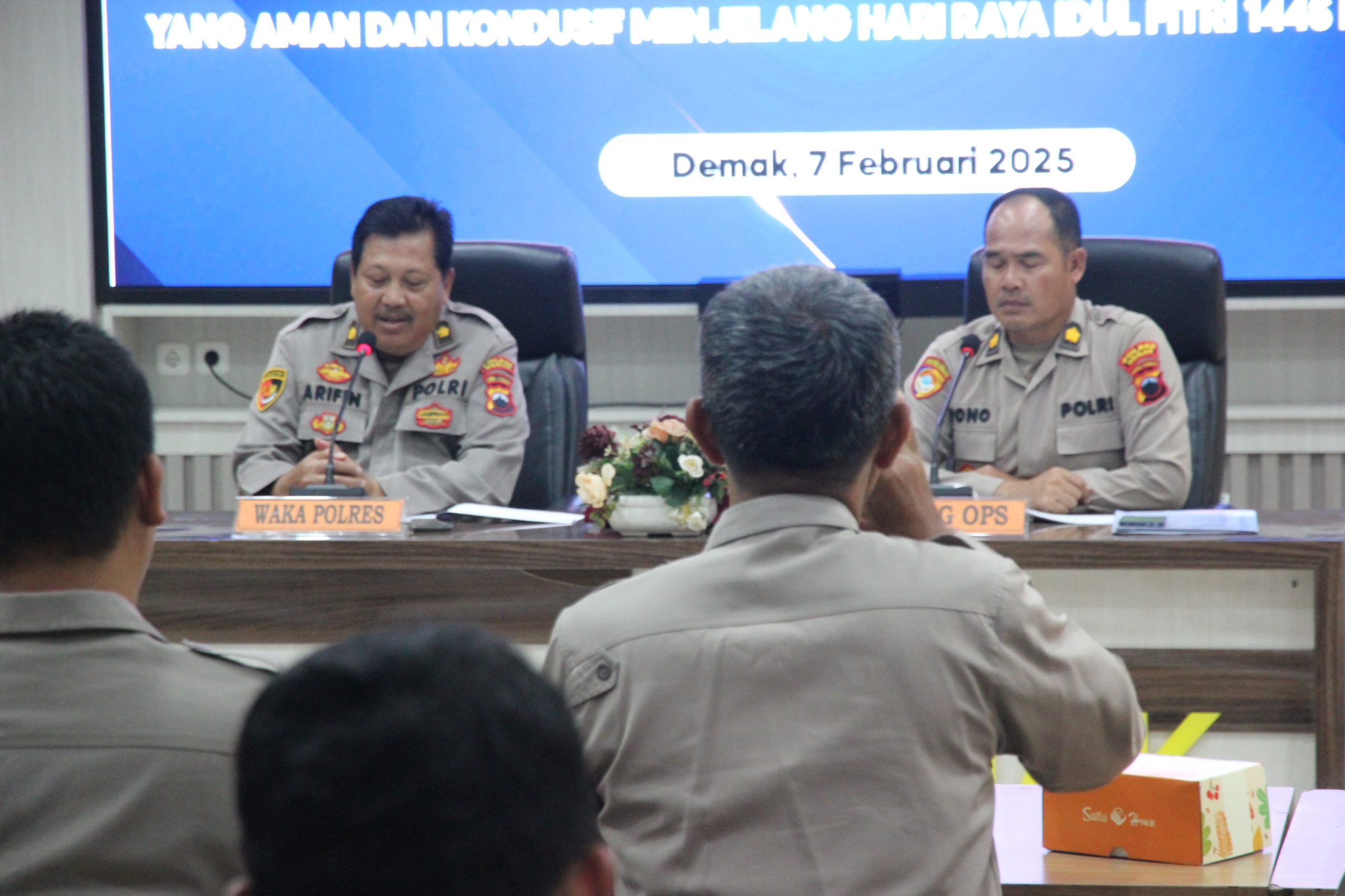 Polres Demak menggelar Latihan Pra Operasi (Lat Pra Ops) Keselamatan Candi 2025 di Aula Wicaksana Laghawa Polres Demak, Jum’at (7/02/2025).