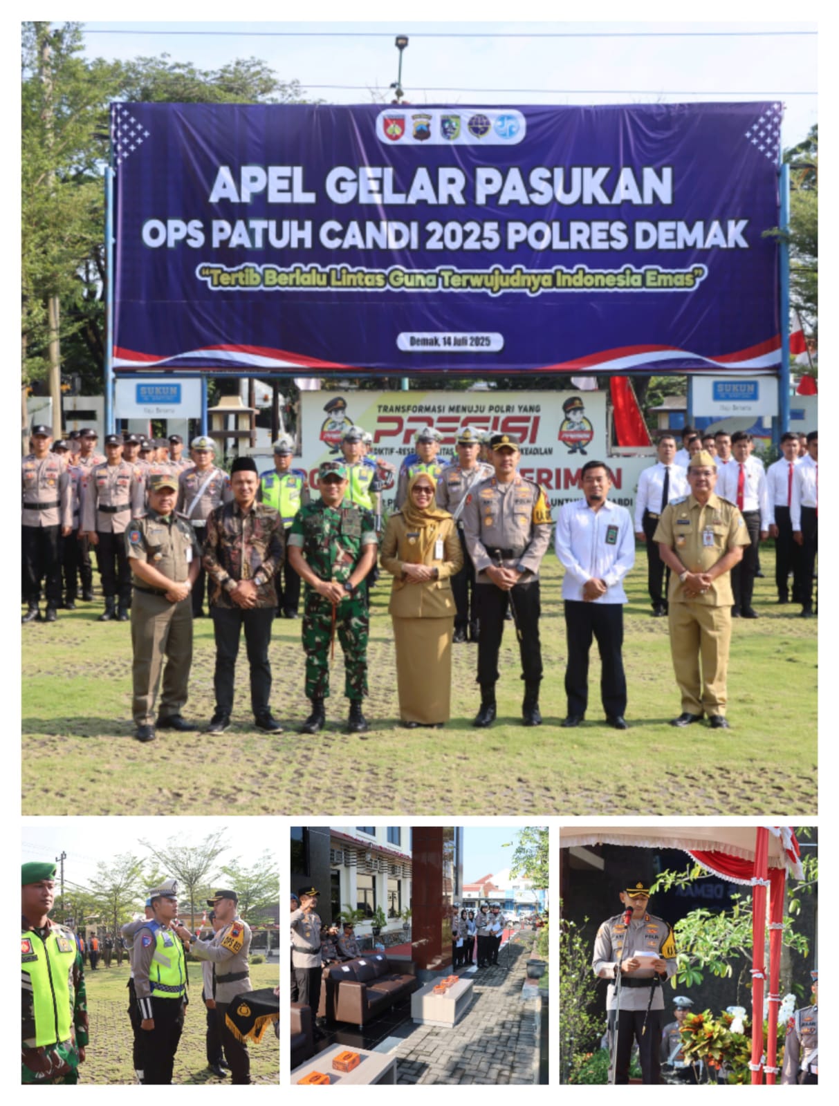 Kepolisian Resor (Polres) Demak, Jawa Tengah, menggelar Operasi Patuh Candi 2025, yang dimulai pada tanggal 14 hingga 27 Juli 2025. Dimulainya operasi ini ditandai dengan Apel Gelar Pasukan yang digelar di Lapangan Wicaksana Laghawa Polres Demak, Senin (14/7/2025) pagi.