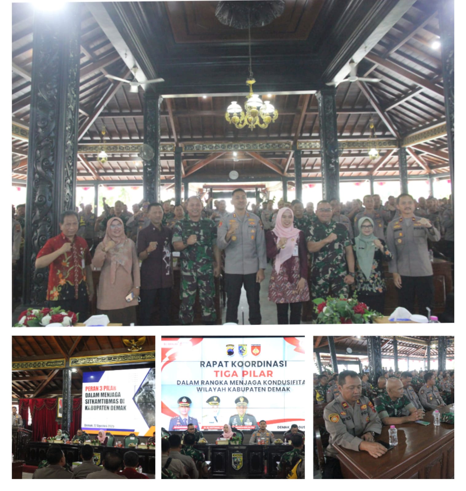 Dalam sambutannya, Bupati Eisti’anah menekankan bahwa keamanan adalah tanggung jawab bersama, terutama bagi TNI, Polri, dan Pemerintah Daerah. Ia menyebut Rakor Tiga Pilar ini sebagai momentum penting untuk memperkuat sinergi dan komitmen dalam mewujudkan Demak yang Bermartabat, Maju, dan Sejahtera.