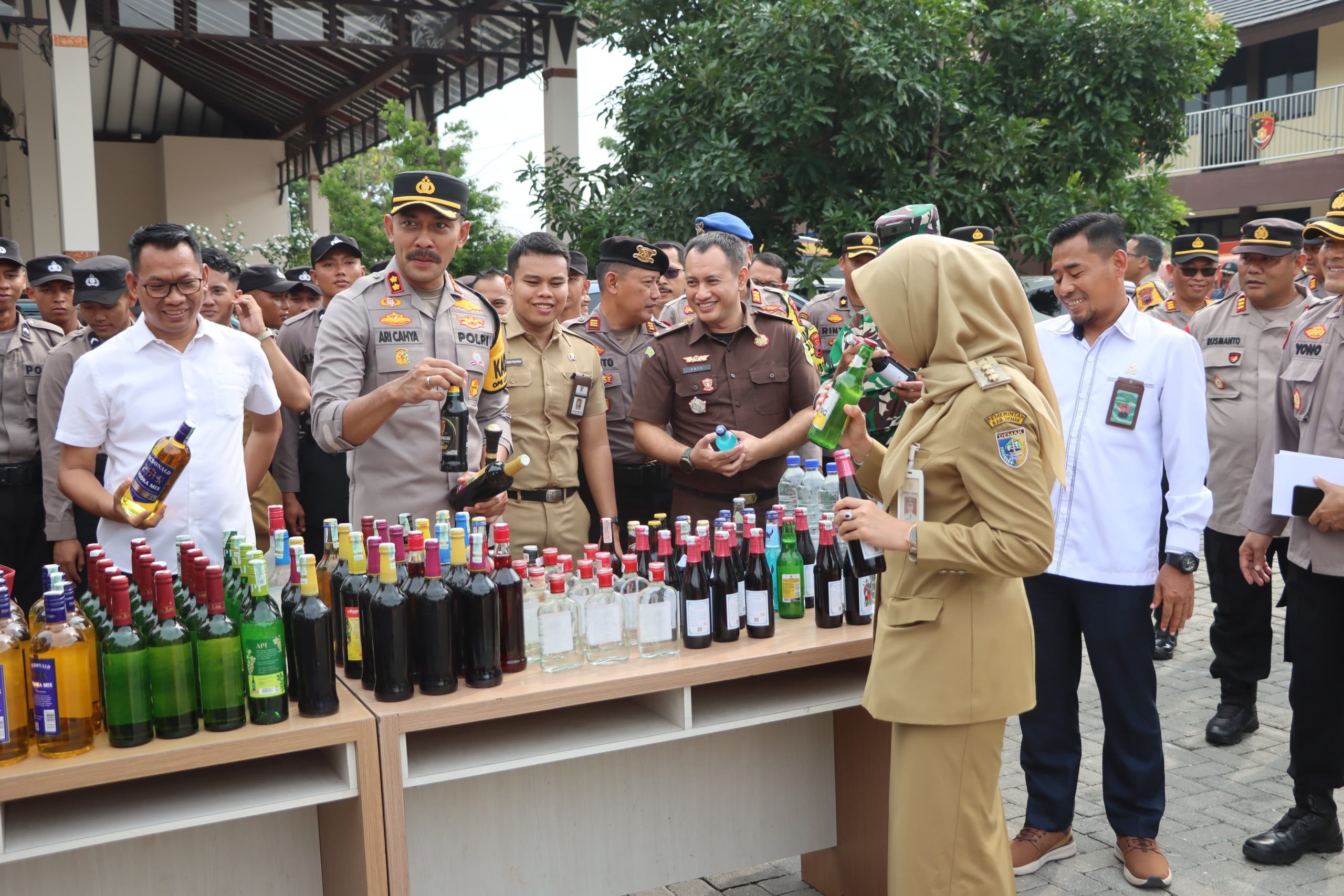 Total ada 7.130 botol miras pabrikan dan 6.948 botol miras tradisional yang kami musnahkan,” terangnya.