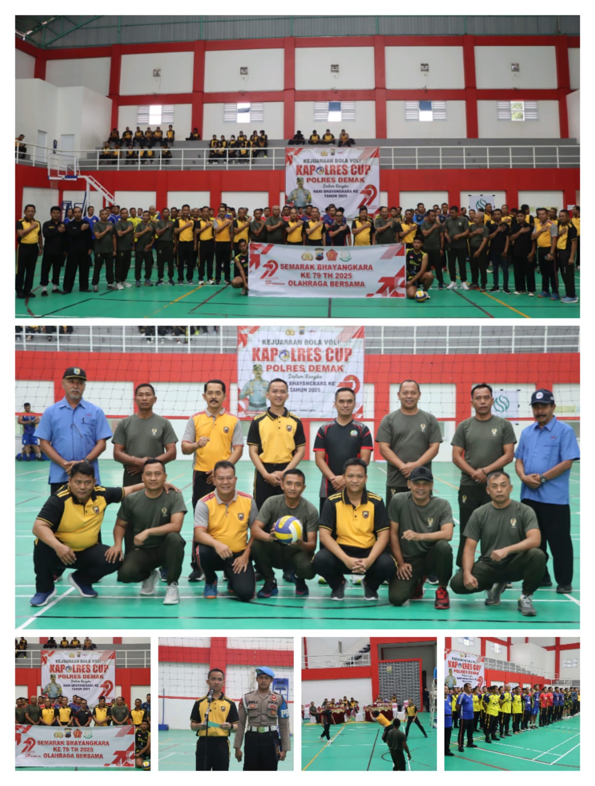 Kepolisian Resor (Polres) Demak, Jawa Tengah menggelar turnamen bola voli bergengsi “Kapolres Cup 2025”, bertempat di Gedung Olahraga (GOR) Kalijaga, Komplek Sport Center Demak, Jum’at (20/6/2025).