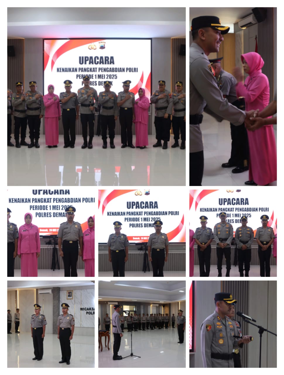 Kepolisian Resor (Polres) Demak menggelar Upacara Kenaikan Pangkat Anggota Polri, Senin (28/4/2025) di Aula Wicaksana Laghawa Mapolres Demak.
