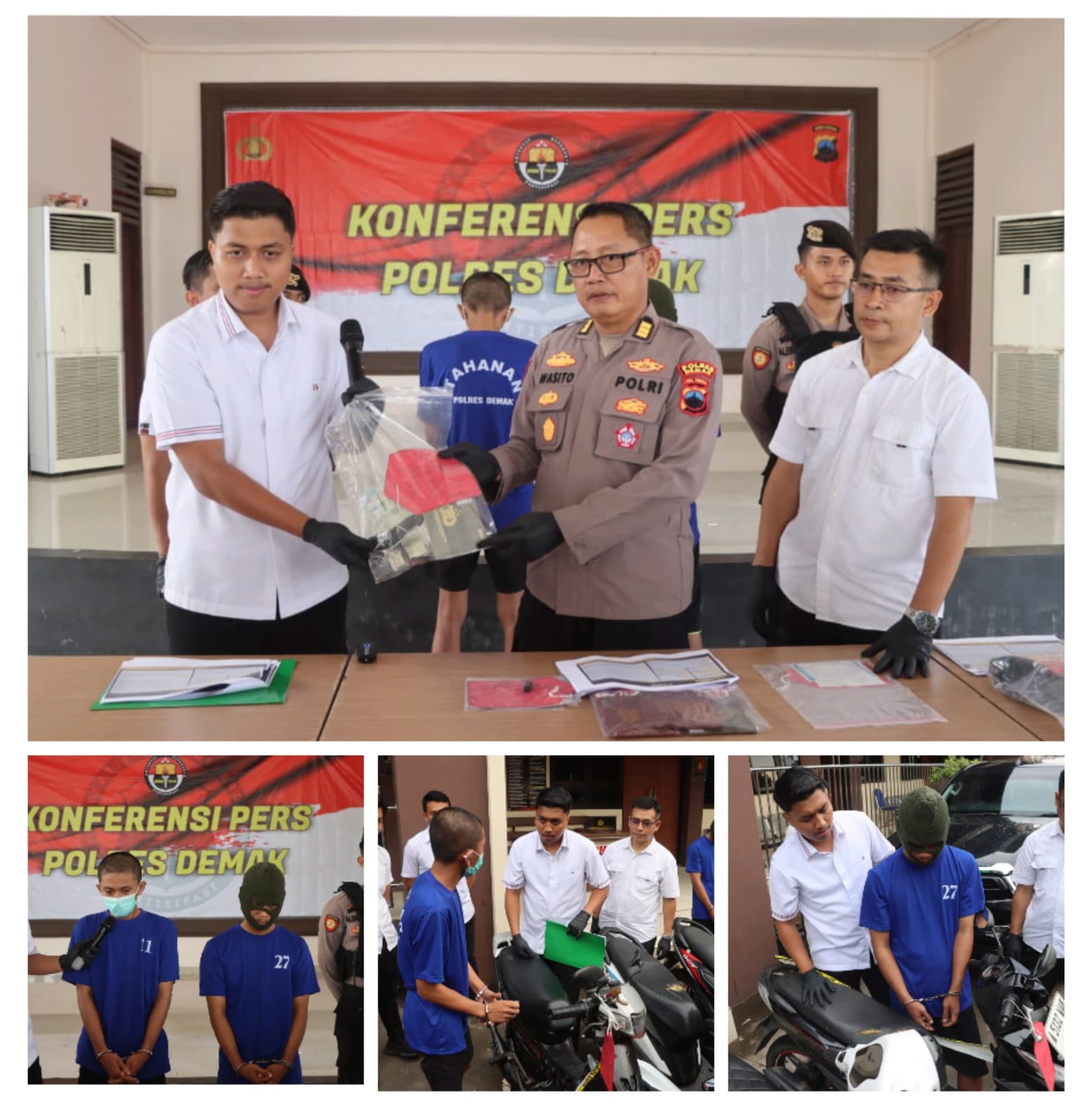Kepolisian Resor (Polres) Demak, Jawa Tengah, berhasil meringkus dua pelaku spesialis pencurian kendaraan bermotor (curanmor) yang merupakan residivis kasus serupa. Kedua pelaku, berinisial MIB (26) dan AA (25), adalah warga Desa Kebonbatur, Kecamatan Mranggen, Demak.