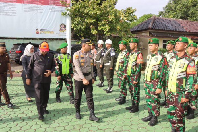 Kapolres Indramayu, AKBP Ari Setyawan Wibowo, S.H., S.I.K., M.Si., memimpin langsung apel yang dihadiri sejumlah pejabat daerah, termasuk Asda 1 Kabupaten Indramayu, Drs. H. Jajang Sudrajat, yang mewakili Bupati Indramayu Hj. Nina Agustina, S.H., M.H., C.R.A., Pasi Intel Kodim 0616/Indramayu Lettu CHK Rusdjana, serta perwakilan dari Kejaksaan Negeri, Pengadilan Negeri, dan Pengadilan Agama Indramayu.