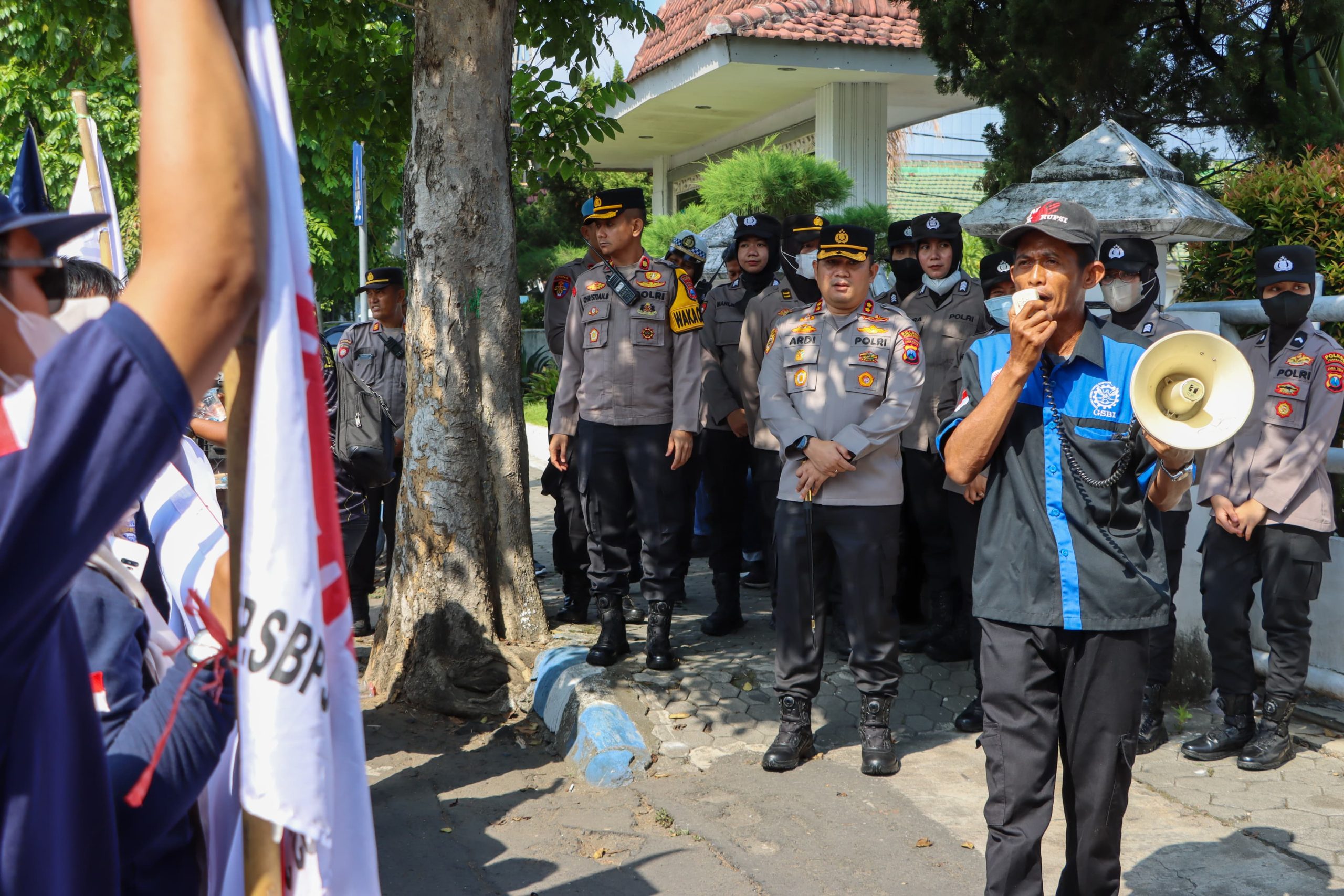 Polres Jombang turut mengamankan kegiatan aksi unjuk rasa oleh DPP GAS-JP yang digelar di depan Gedung DPRD Kabupaten Jombang. Aksi ini diikuti oleh sekitar 50 orang peserta, dengan tuntutan utama agar pemerintah menindak tegas perusahaan outsourcing yang memberikan upah di bawah standar UMR.