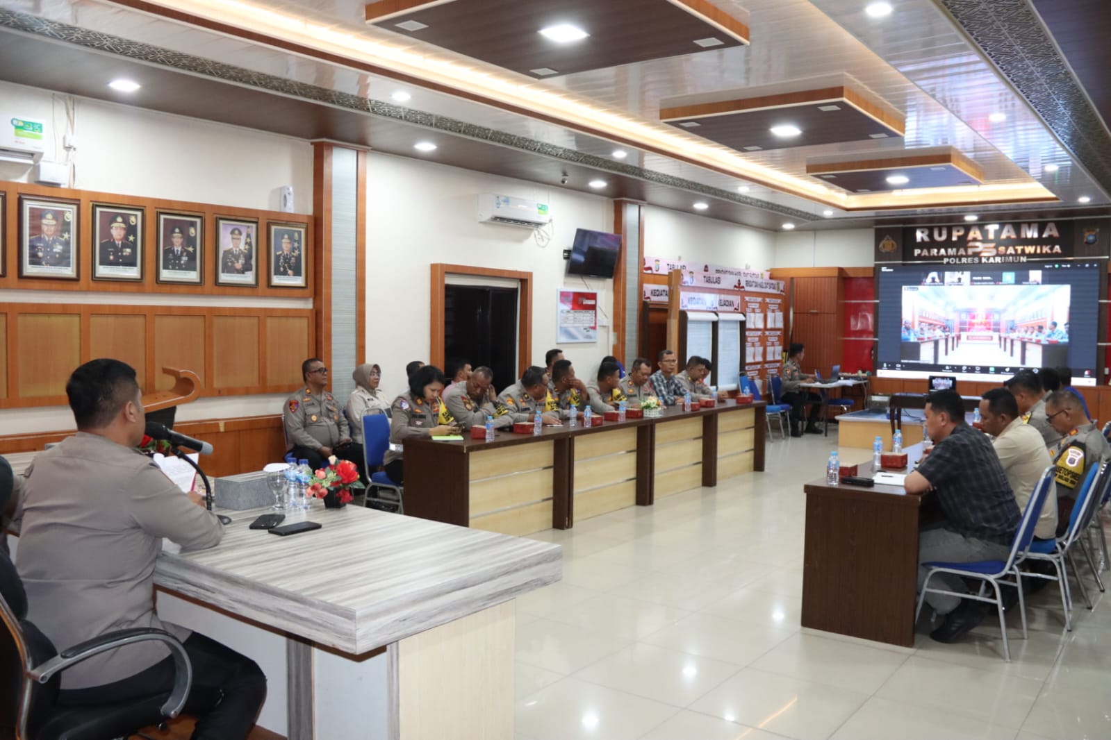 Dalam rangka persiapan pelaksanaan Operasi Lilin Seligi 2024, Polres Karimun menggelar Rapat Koordinasi (Rakor) Internal pada Selasa, 17 Desember 2024. Kegiatan yang berlangsung dari pukul 09.30 WIB hingga 11.15 WIB ini dilaksanakan di Ruang Rapatama Polres Karimun.