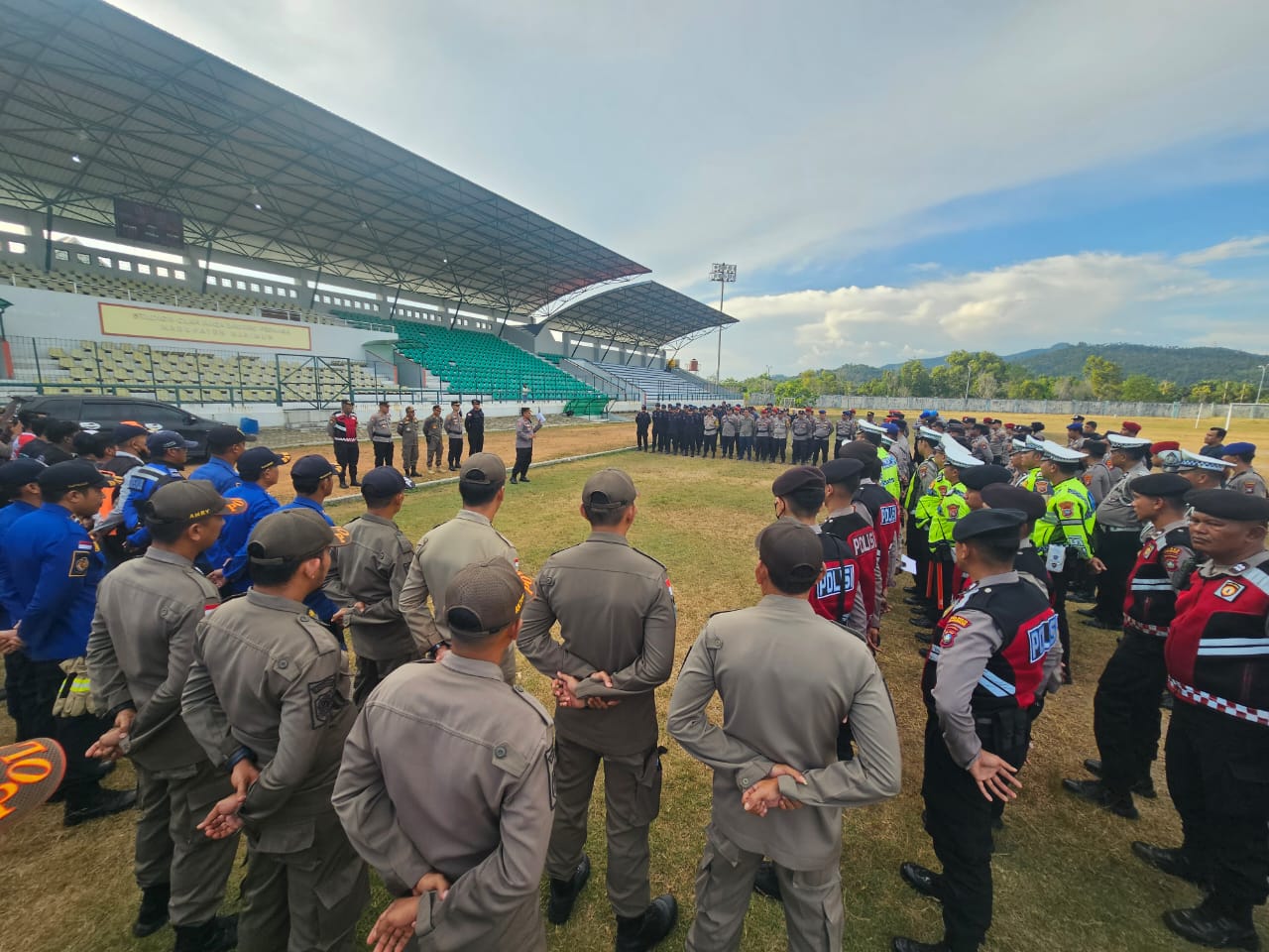 Adapun Jumlah Personil yang melaksanakan pengamanan antara lain : personil polres: 187 personil, Brimob : 30 Personil, TNI : 20 Personil, Dishub : 10 orang, Pol PP : 20 orang, Damkar : 12 orang dan pihak Medis : 9 orang.