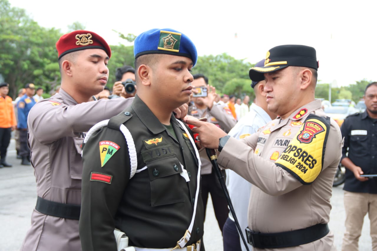 Apel gelar pasukan tersebut dipimpin Kapolres Karimun AKBP Robby Topan Manusiwa, S.I.K., M.H. secara langsung. Kemudian setelahnya, dilaksanakan penyematan tanda pita Ops Lilin Seligi 2024 kepada perwakilan personel yang telah ditentukan.