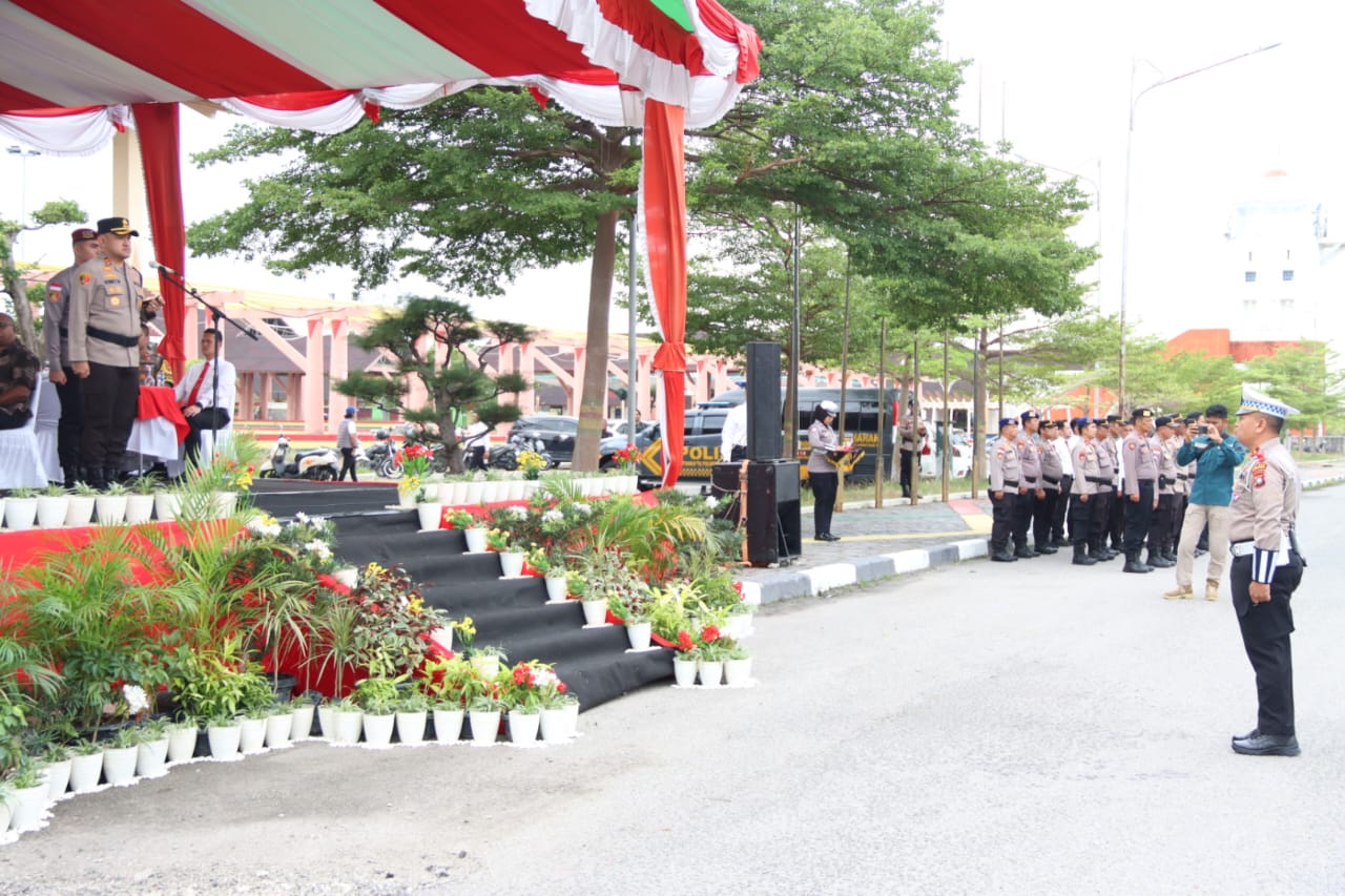 Kapolres Karimun AKBP Robby Topan Manusiwa, S.I.K., M.H. menyampaikan ucapan amanat dari bapak Kapolri, ia ucapkan terimakasih dan apresiasi setinggi-tingginya kepada seluruh personel pengamanan yang terdiri dari unsur TNI-Polri, mitra Kamtibmas, maupun seluruh pihak terkait lainnya yang turut berpartisipasi dalam mendukung Operasi Lilin 2024.