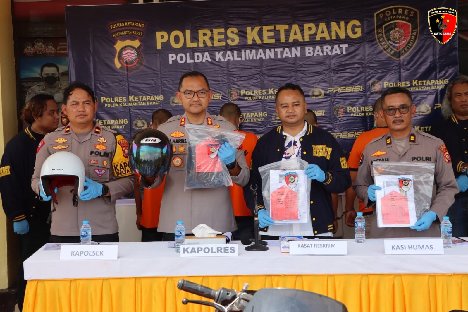 Polres Ketapang Polda Kalbar menggelar konferensi pers pengungkapan kasus pencurian kendaraan bermotor ( curanmor ) yang terjadi di wilayah Kecamatan Delta Pawan Kabupaten Ketapang pada Bulan Oktober 2025 lalu. Konferensi Pers dipimpin langsung Kapolres Ketapang AKBP Muhammad Harris, S.H., S.I.K., M.I.K., CPHR yang didampingi Kasat Reskrim AKP Ryan Eka Cahya, S.I.K., M.Si., Kasi Humas IPTU Niptah, Kapolsek Delta Pawan IPDA Chepry, S.H, serta dihadiri awak media yang bertugas peliputan di wilayah Ketapang, Senin (10/11/2025).