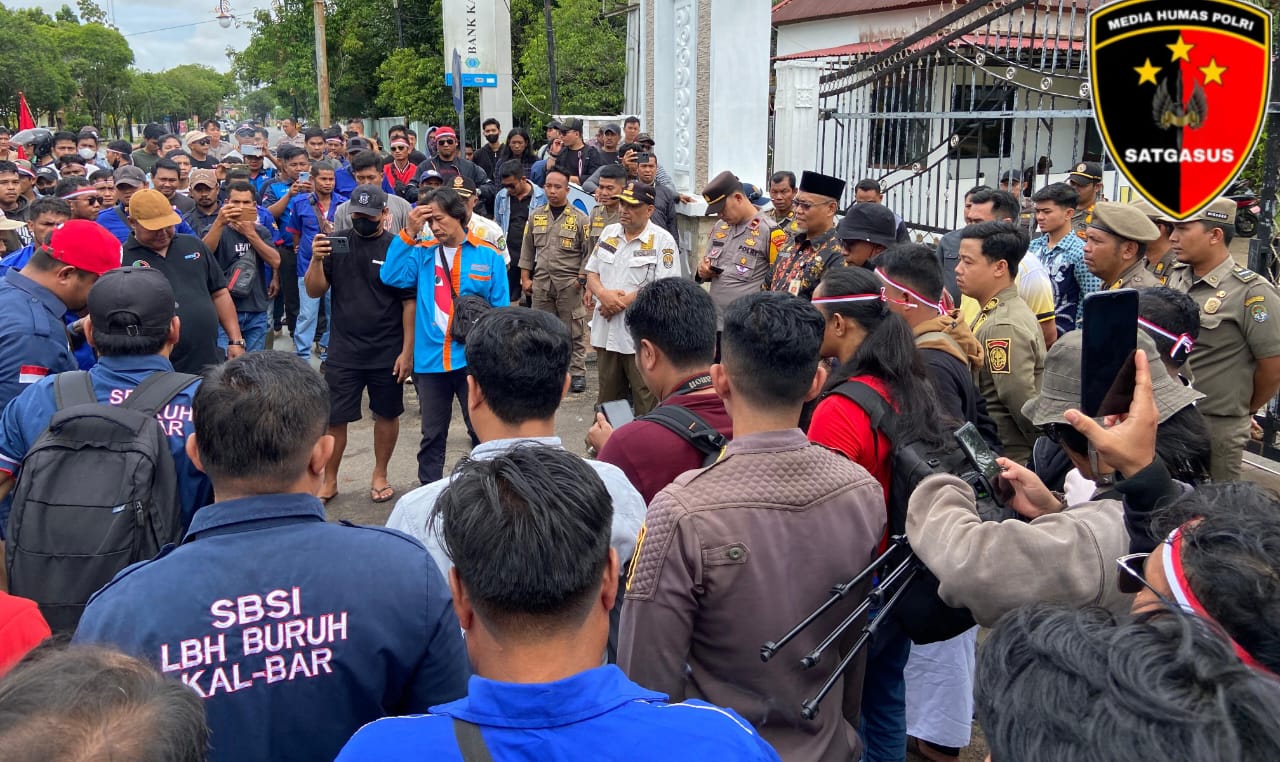 Polres Ketapang menurunkan 73 personel untuk mengawal kegiatan penyampaian aspirasi dari ratusan buruh pekerja yang tergabung didalam Aliansi Federasi Serikat Pekerja/Buruh Kabupaten Ketapang. Ratusan buruh tersebut melaksanakan orasi untuk menyampaikan aspirasi mereka di depan Gedung DPRD dan Kantor Bupati Ketapang, pada Jum’at (27/12/2024) Pukul 09.00 WIB