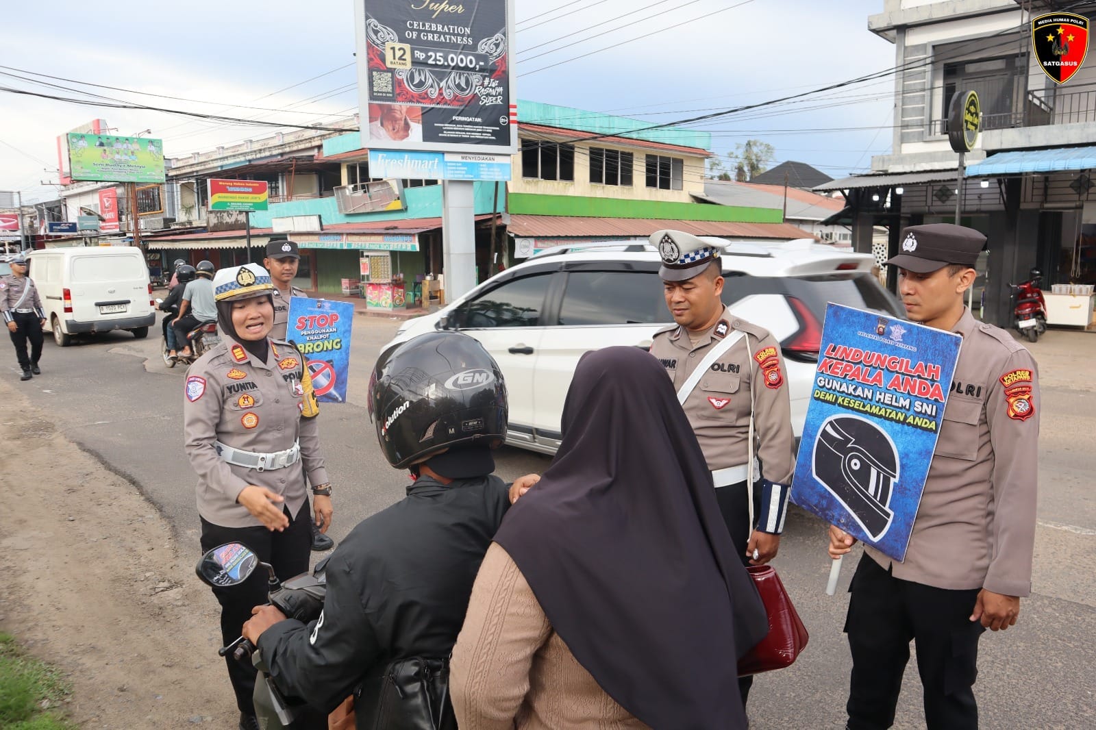 Dalam kegiatan tersebut, petugas memberikan himbauan tentang kewajiban penggunaan helm SNI, kelengkapan surat-surat kendaraan, larangan berkendara melebihi batas kecepatan, serta bahaya menggunakan ponsel saat mengemudi. Selain itu, pengendara yang patuh juga diberikan apresiasi sebagai bentuk penghargaan atas kepatuhan mereka dalam berlalu lintas.