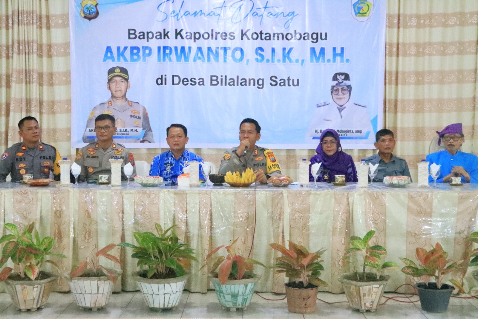 Polres Kotamobagu gencar menggelorakan program Asta Cita Presiden RI Prabowo Subianto di sektor ketahanan pangan dan kesejahteraan petani. Kapolres Kotamobagu AKBP Irwanto SIK MH bersama Kasat Binmas dan Kapolsek Kotamobagu Utara mengadakan silaturahmi dengan masyarakat Desa Bilalang Satu Kecamatan Kotamobagu Utara, _Kamis (14/11/2024).