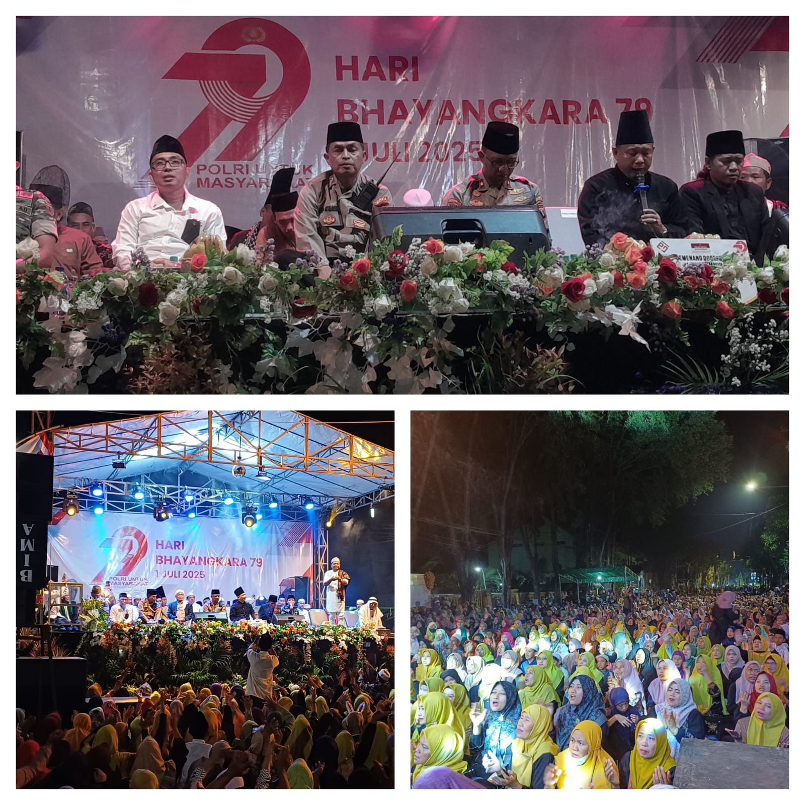 Memperingati Hari Bhayangkara ke-79, Polsek Krian Polresta Sidoarjo menggelar kegiatan religi bertajuk “Krian Bersholawat”, Jumat (27/6/2025) malam, bertempat di halaman Mapolsek Krian. Kegiatan ini dihadiri oleh ratusan warga, tokoh agama, tokoh masyarakat, serta unsur Forkopimka Kecamatan Krian.