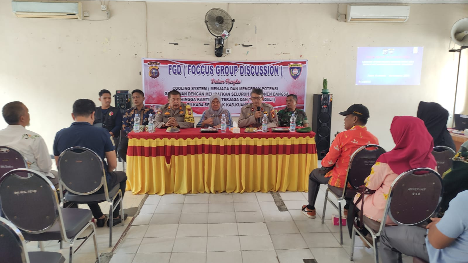 Menjelang Pemilihan Kepala Daerah (Pilkada) serentak 2024, Polres Kuantan Singingi (Kuansing) bersama Polsek Kuantan Tengah menyelenggarakan kegiatan Focus Group Discussion (FGD) Cooling System di aula kantor Camat Kuantan Tengah pada Kamis (14/11/2024). Kegiatan ini bertujuan menjaga keamanan dan ketertiban masyarakat (kamtibmas) dan menciptakan suasana pemilu yang aman, damai, dan kondusif.