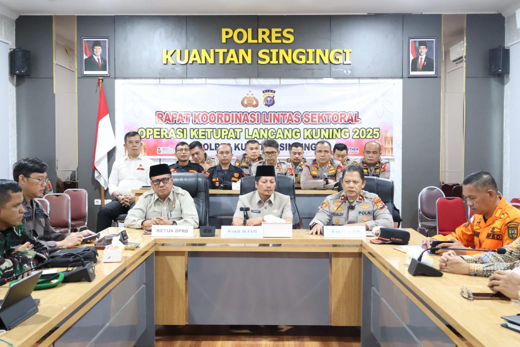 Dalam rangka persiapan pengamanan arus mudik dan perayaan Idulfitri 1446 H, Polres Kuantan Singingi (Kuansing) menggelar Rapat Eksternal Operasi Ketupat Lancang Kuning 2025 pada Kamis (20/3) pukul 09.30 WIB. Kegiatan ini berlangsung di Aula Rupatama Polres Kuansing dan dihadiri oleh sejumlah pejabat pemerintah daerah, unsur TNI-Polri, serta instansi terkait.