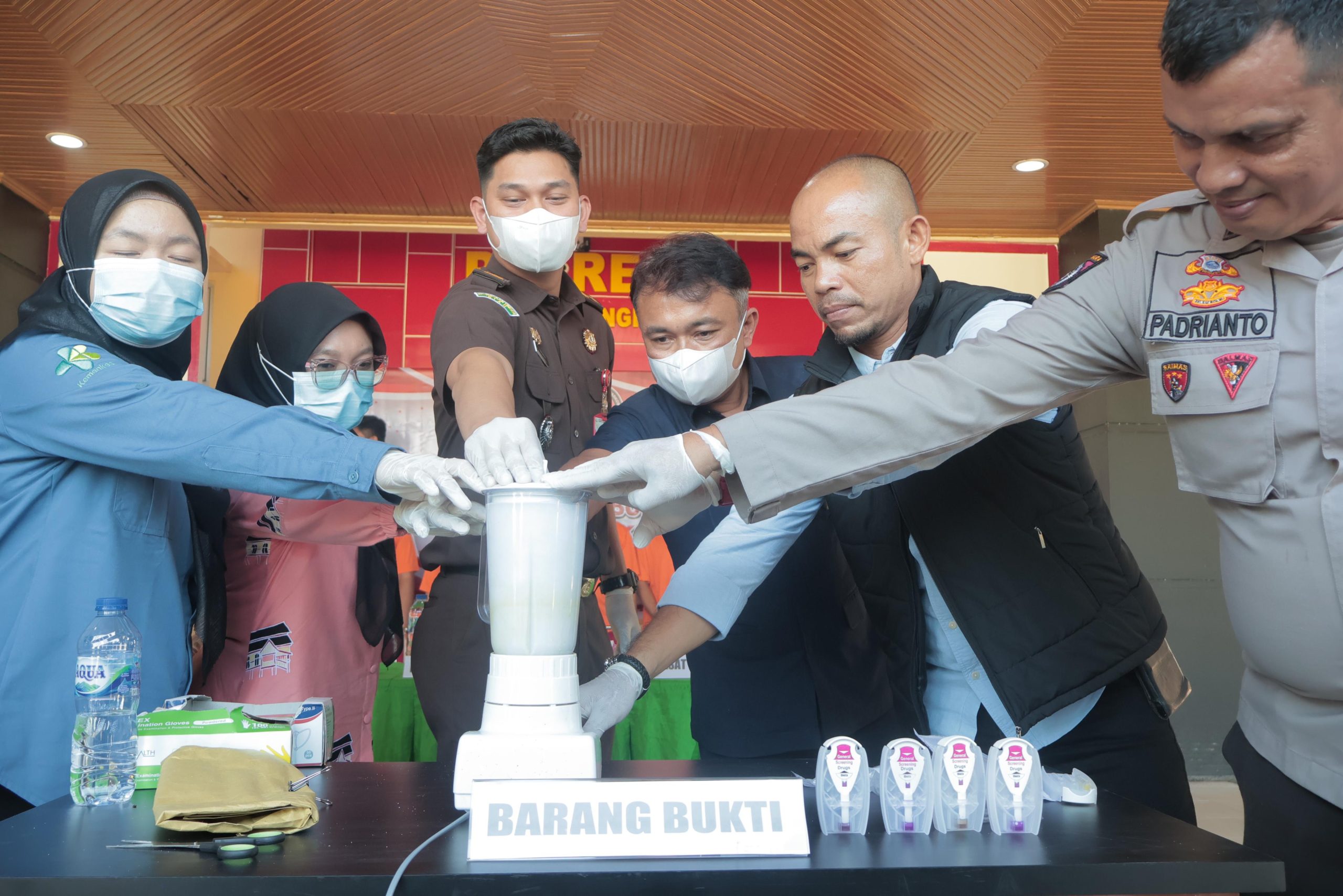 Pemusnahan barang bukti dilakukan secara terbuka dan disaksikan langsung oleh unsur penegak hukum serta instansi terkait. Proses pemusnahan dilakukan dengan cara melarutkan sabu ke dalam air, kemudian diblender dan dicampur dengan deterjen agar tidak dapat disalahgunakan kembali.