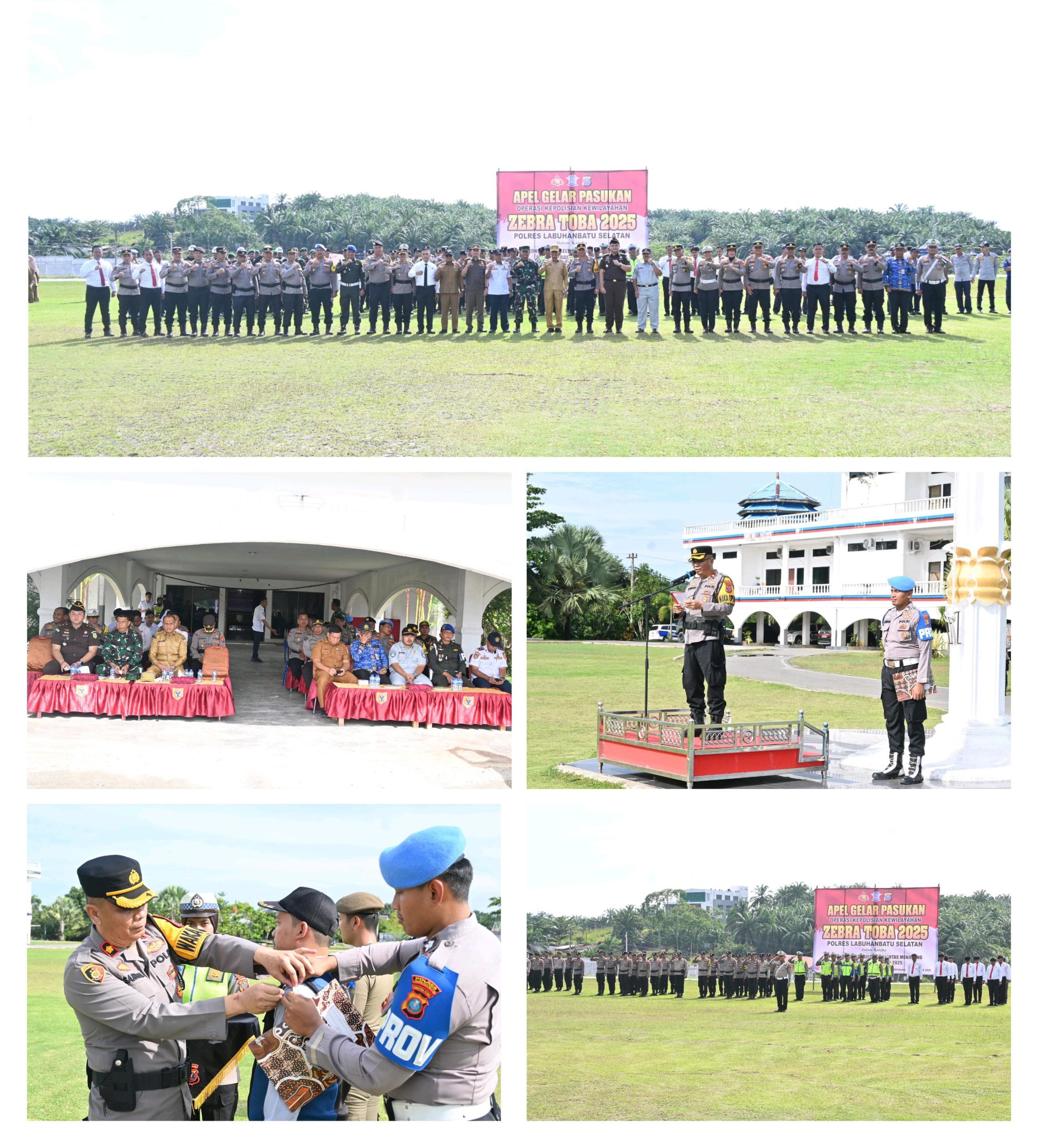 Polres Labuhanbatu Selatan menggelar Apel Pasukan Operasi Zebra Toba 2025 di lapangan apel Kantor Bupati Labuhanbatu Selatan, dijalan lintas Sumatera Kotapinang-Gunung Tua, Desa Sosopan, Kecamatan Kotapinang, Kabupaten Labuhanbatu Selatan, Senin (17/11/2025). Apel yang dipimpin Wakapolres Labuhanbatu Selatan, KOMPOL Ramsen Samosir, S.H., M.H., mewakili Kapolres Labuhanbatu Selatan, AKBP Aditya S.P. Sembiring Muham, S.I.K., ini menjadi pengecekan akhir kesiapan personel dan sarana menjelang pelaksanaan operasi.