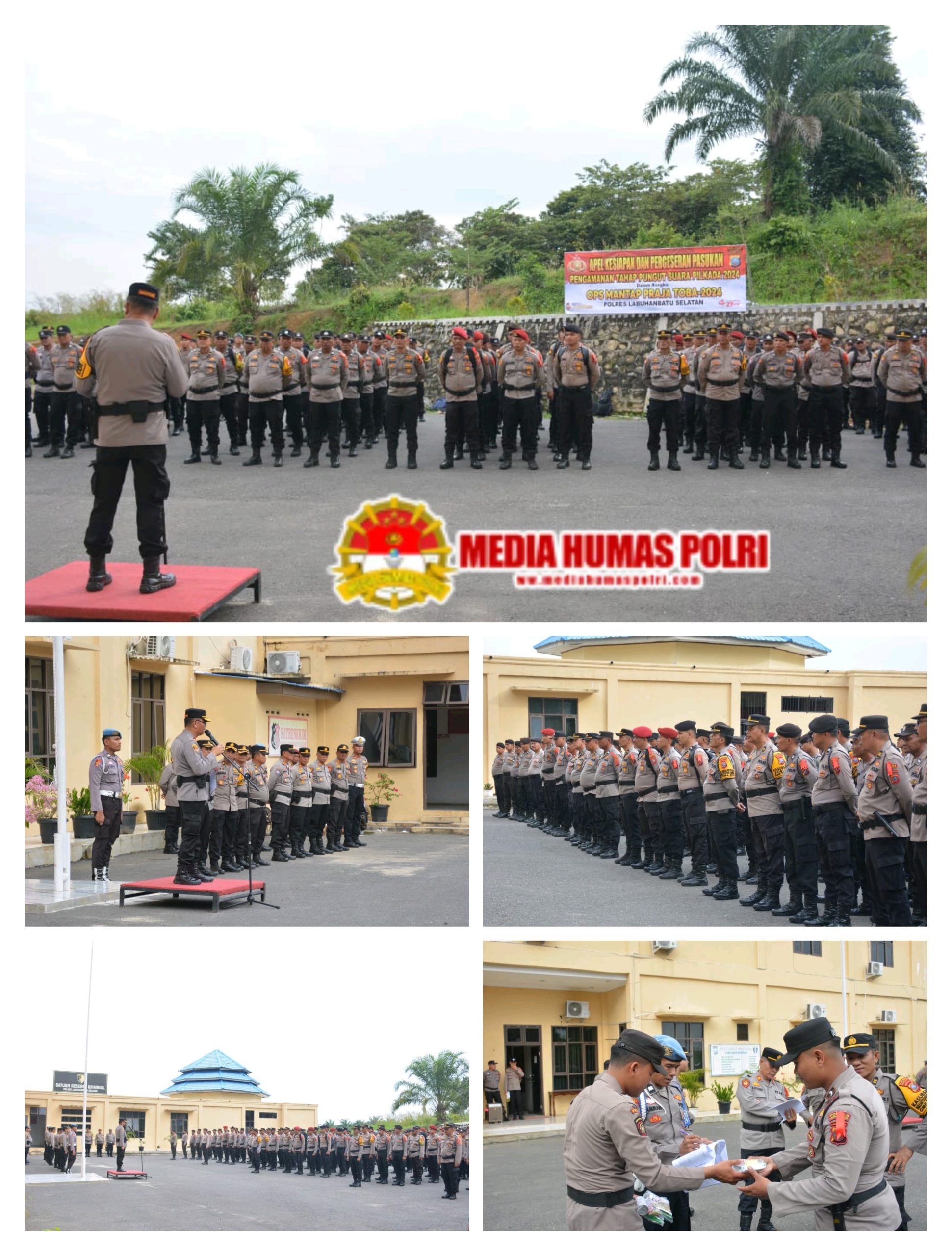 Sebanyak 152 personel Polres Labuhanbatu Selatan siap dikerahkan untuk mengamankan 617 TPS di wilayah Kabupaten Labuhanbatu Selatan. Kapolres Labuhanbatu Selatan, AKBP Arfin Fachreza S.H., S.I.K., M.H., berharap seluruh personel dapat menjalankan tugas dengan baik demi kelancaran Pilkada Serentak 2024.