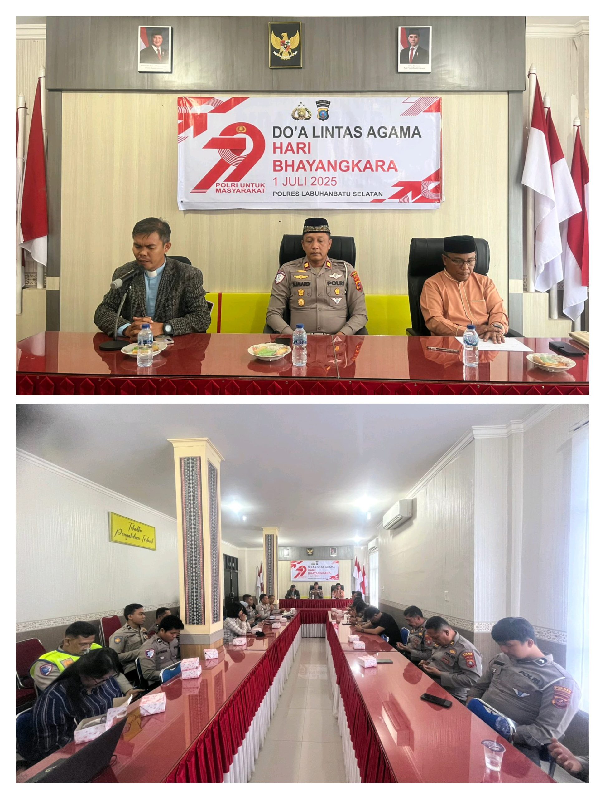 Dalam rangka memperingati Hari Ulang Tahun (HUT) Bhayangkara Ke-79 Tahun 2025, Polres Labuhanbatu Selatan menggelar kegiatan doa bersama lintas agama yang berlangsung khidmat di Aula Polres Labuhanbatu Selatan, Kamis (26/6/2025).