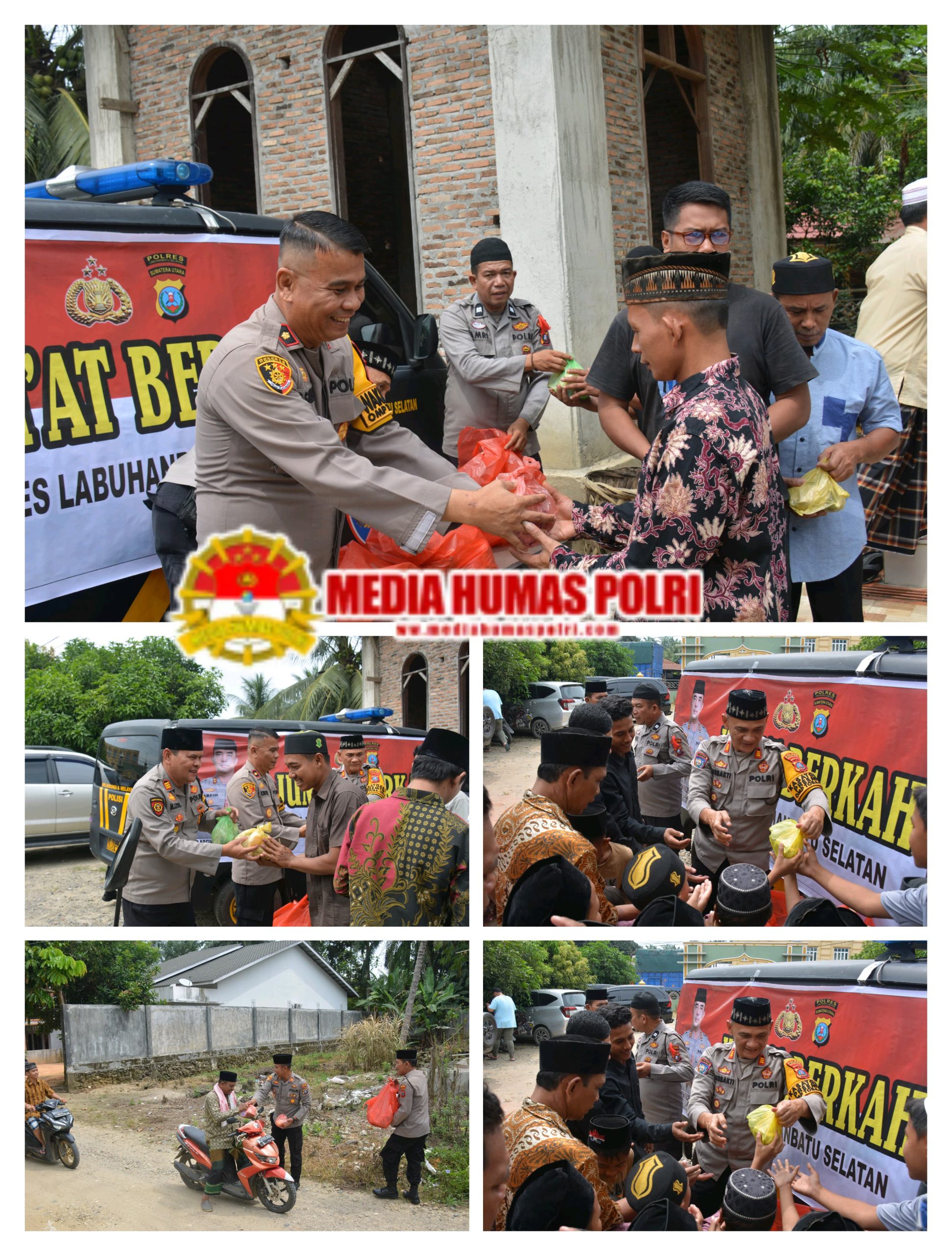 Polres Labuhanbatu Selatan melaksanakan kegiatan Jumat Berkah dengan membagikan 100 paket nasi kepada jamaah Masjid Uswatun Hasanah, Dusun Cikampak Permai, Desa Aek Batu, Kecamatan Torgamba, Jumat (10/1/2025).