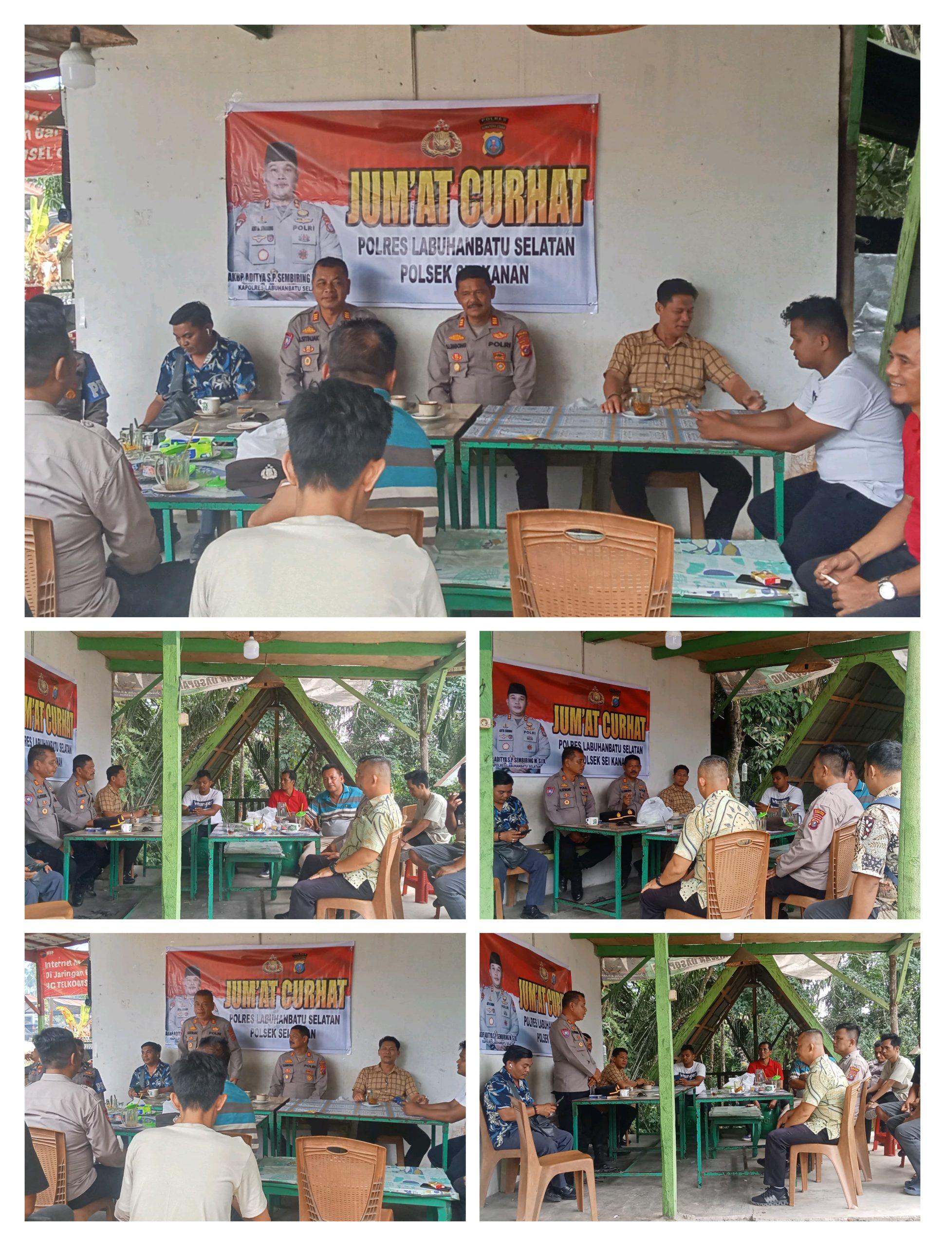 Kepolisian Resor (Polres) Labuhanbatu Selatan melalui program *”Jumat Curhat”* kembali menyapa masyarakat, kali ini diadakan di Warung Kopi Yunus, Lingkungan Martopotan, Kecamatan Sei Kanan, Kabupaten Labuhanbatu Selatan.