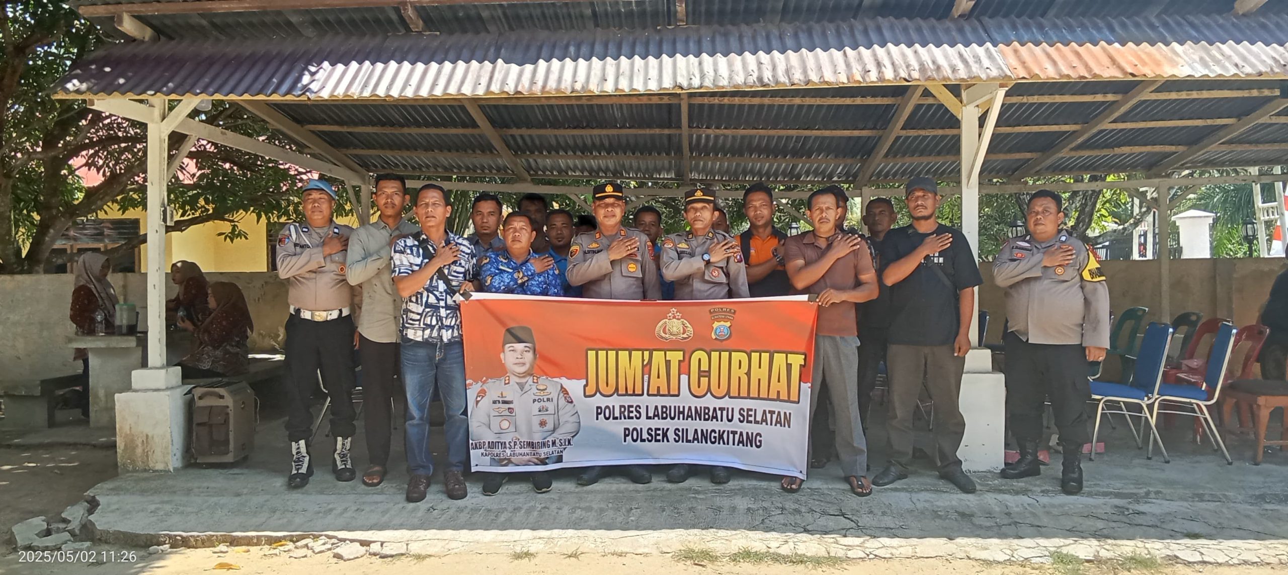 Kapolres Labuhanbatu Selatan, AKBP Aditya S.P. Sembiring Muham, S.I.K., melalui Kasat Binmas AKP Haposan Sitinjak menyampaikan bahwa “Jum’at Curhat” merupakan salah satu program untuk mendekatkan diri dengan masyarakat sekaligus menyerap langsung permasalahan yang terjadi di tengah-tengah warga.