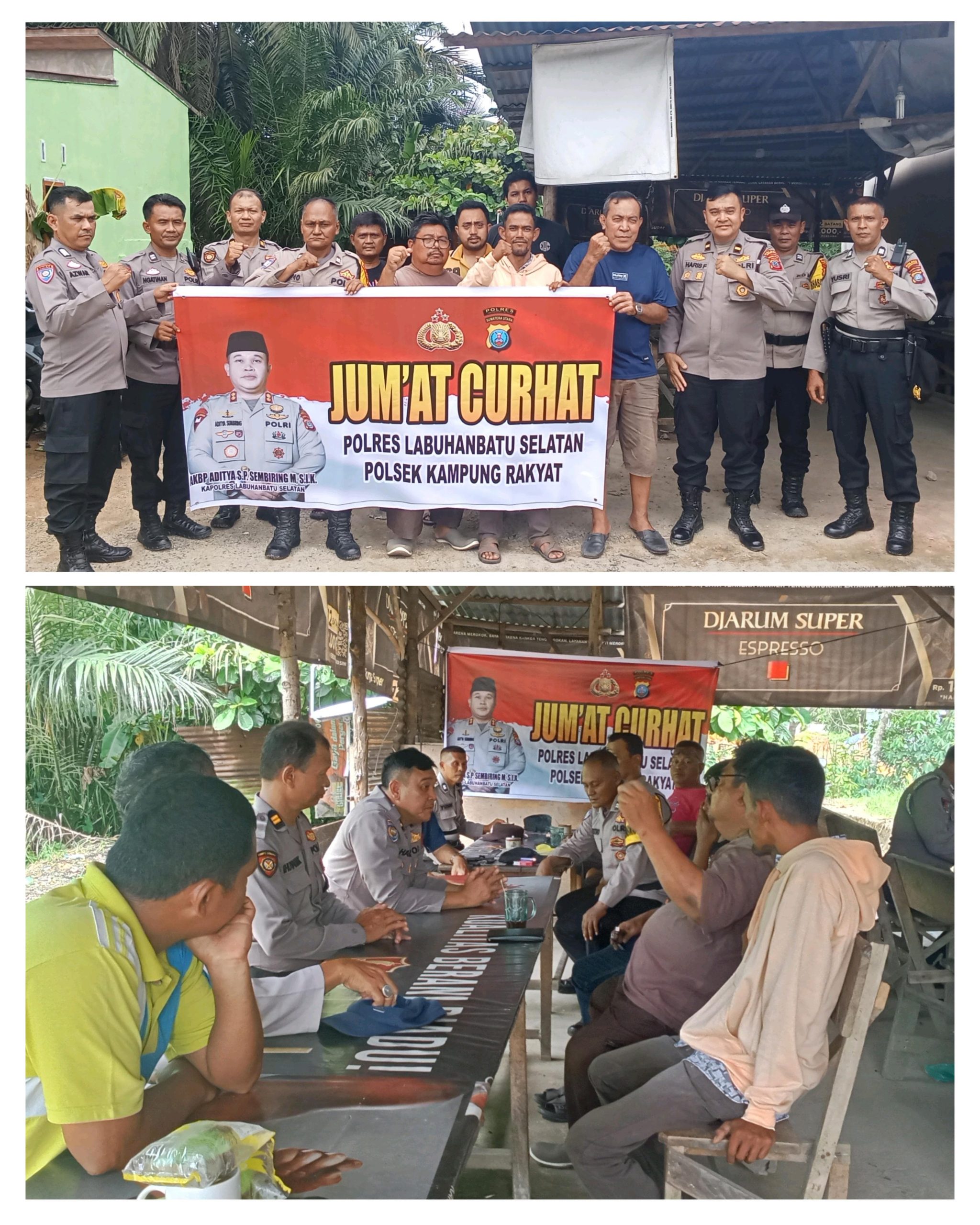 Polres Labuhanbatu Selatan kembali menggelar kegiatan Jumat Curhat sebagai upaya mendekatkan diri dengan masyarakat serta menyerap aspirasi warga secara langsung. Kegiatan tersebut digelar di warung Zuhri, Desa Pekan Tolan, Kecamatan Kampung Rakyat, Kabupaten Labuhanbatu Selatan, Jumat (23/5/2025).