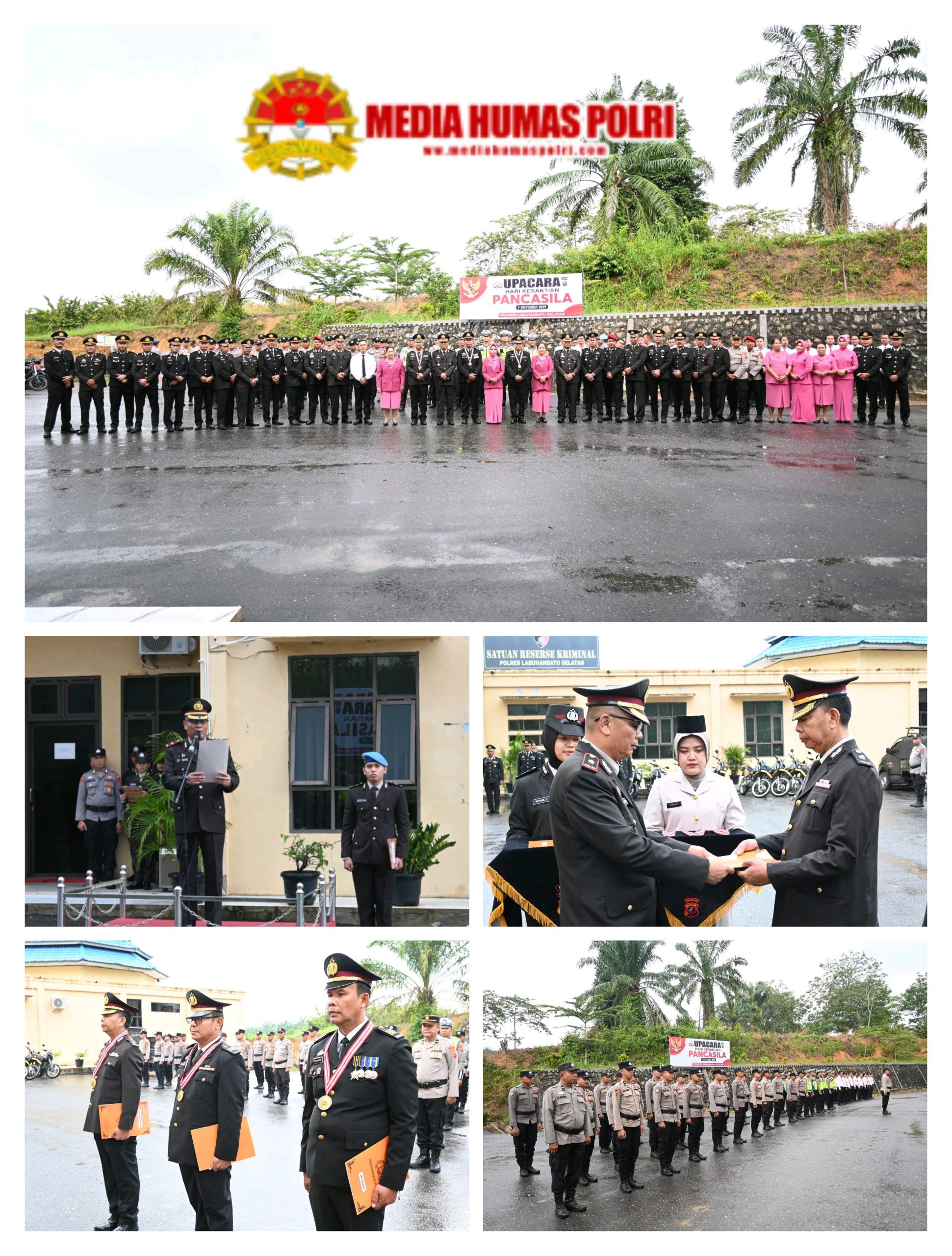 Polres Labuhanbatu Selatan melaksanakan Upacara Hari Kesaktian Pancasila yang dirangkai dengan Wisuda Purna Bhakti Personel Polri di halaman apel Mapolres Labuhanbatu Selatan, Rabu (1/10/2025).