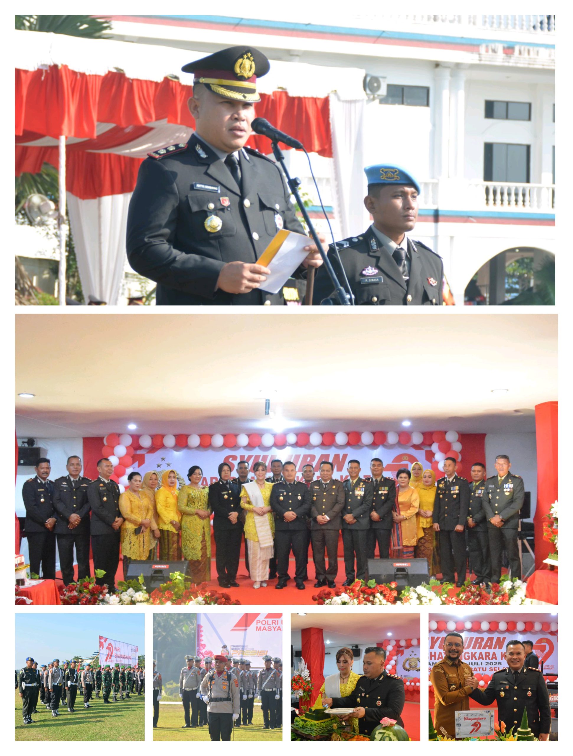Polres Labuhanbatu Selatan menggelar upacara peringatan Hari Ulang Tahun (HUT) Bhayangkara ke-79 Tahun 2025 dengan khidmat dan semangat kebersamaan di halaman Kantor Bupati Labuhanbatu Selatan, Jalan Lintas Sumatera Kotapinang–Gunung Tua, Desa Sosopan, Kecamatan Kotapinang, Kabupaten Labuhanbatu Selatan, Selasa (1/7/2025).