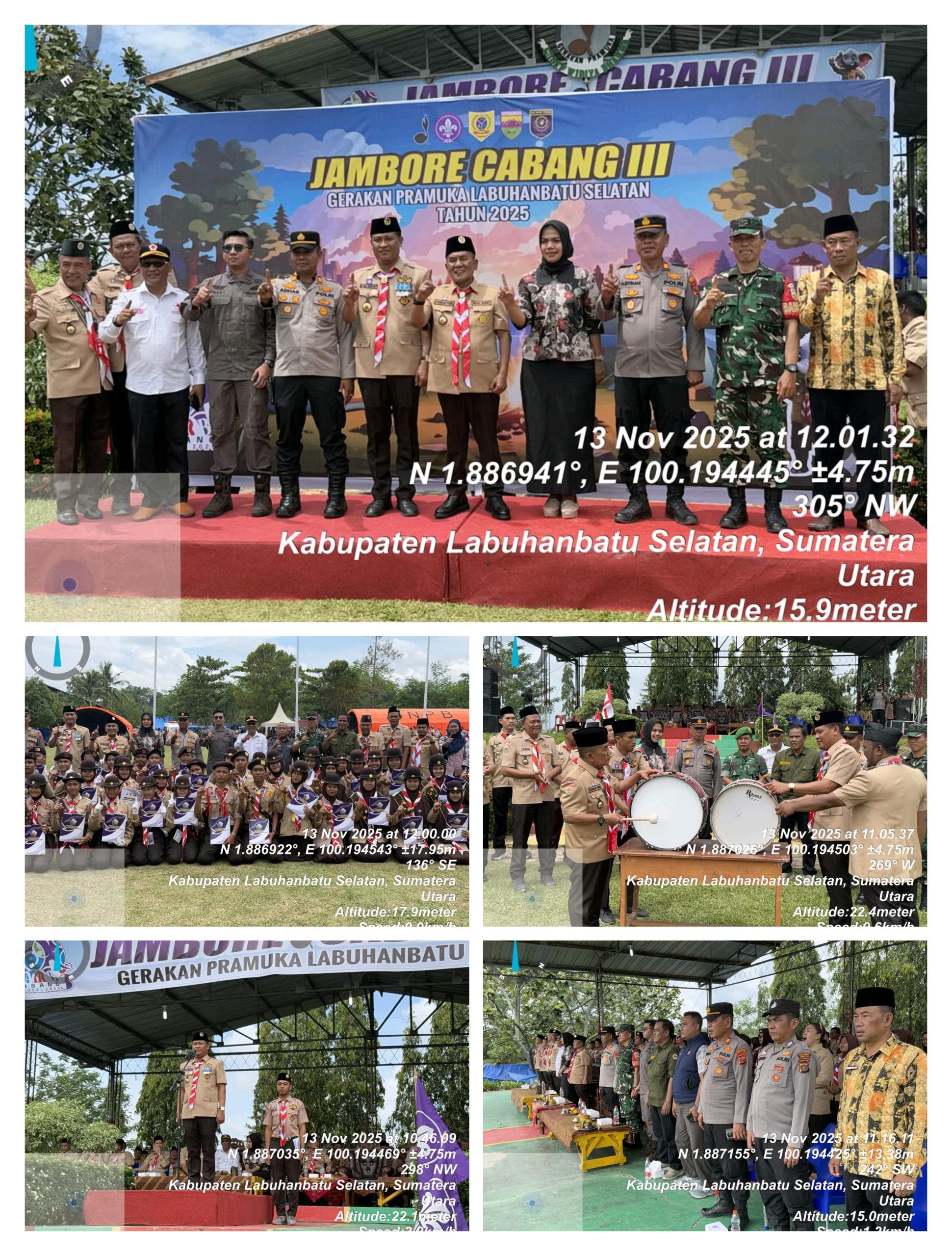 Polres Labuhanbatu Selatan menghadiri kegiatan pembukaan Jambore Cabang III Gerakan Pramuka Labuhanbatu Selatan Tahun 2025 pada Kamis (13/11/2025), di Bumi Perkemahan PT Asam Jawa, Desa Pangarungan, Kecamatan Torgamba, Kabupaten Labuhanbatu Selatan. Acara yang dihadiri ribuan peserta dan sejumlah pejabat daerah yang memberi warna tersendiri pada momentum besar dunia kepramukaan di Labuhanbatu Selatan.