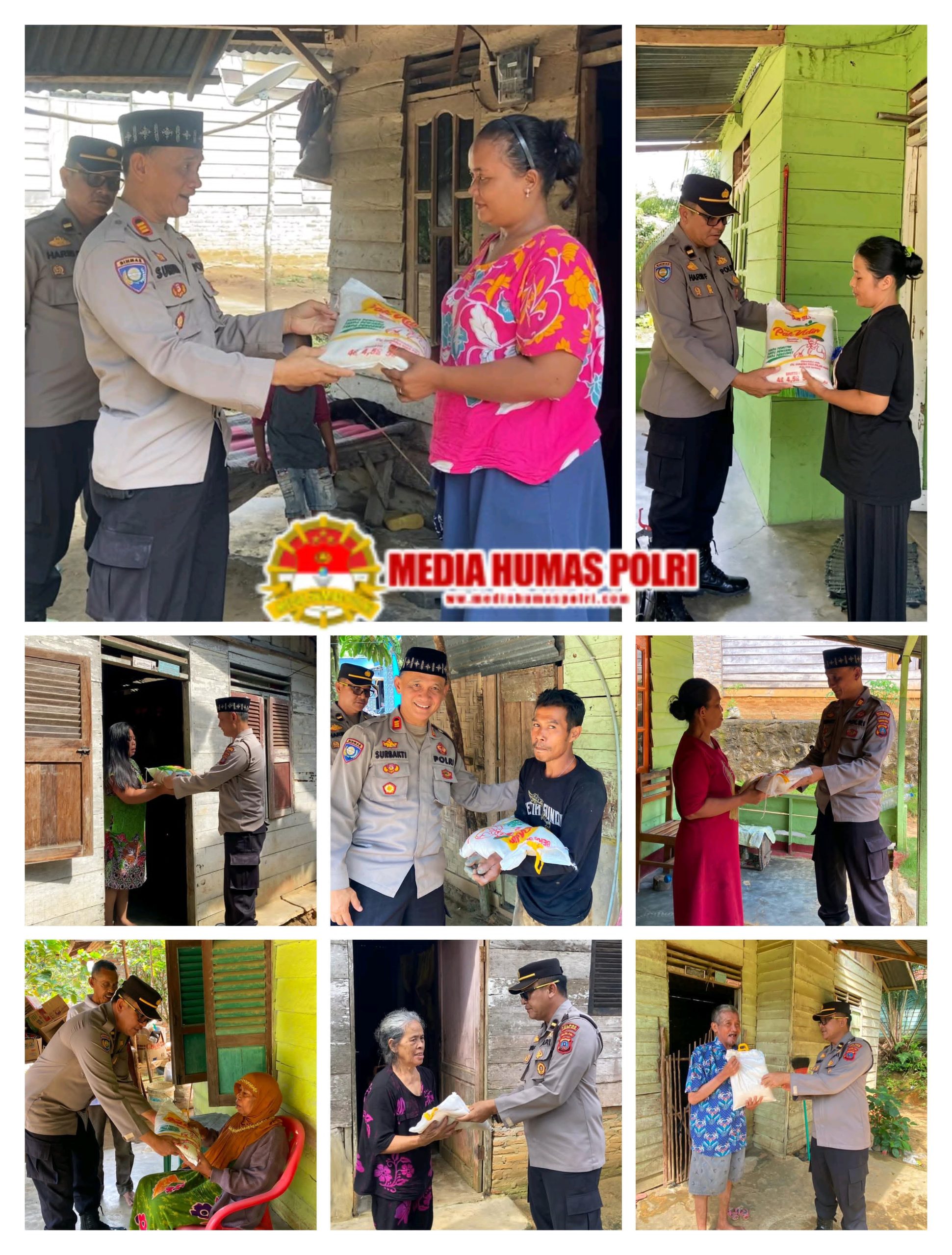 Bantuan berupa 5 kg beras sebanyak 10 karung diberikan secara langsung kepada masyarakat yang membutuhkan.
