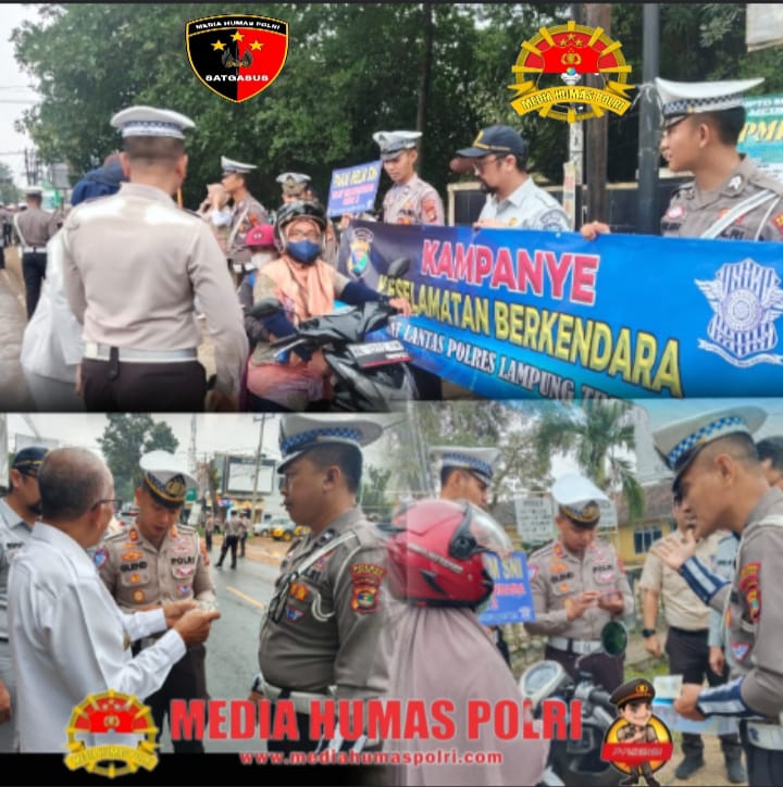 Berbagai cara dilakukan guna terwujudnya Kabupaten Lampung Timur yang tertib dan kondusif dalam keamanan, keselamatan dan ketertiban berlalu lintas dengan salah satu caranya memberikan sosialisasi kepada pengendara yang melintas.